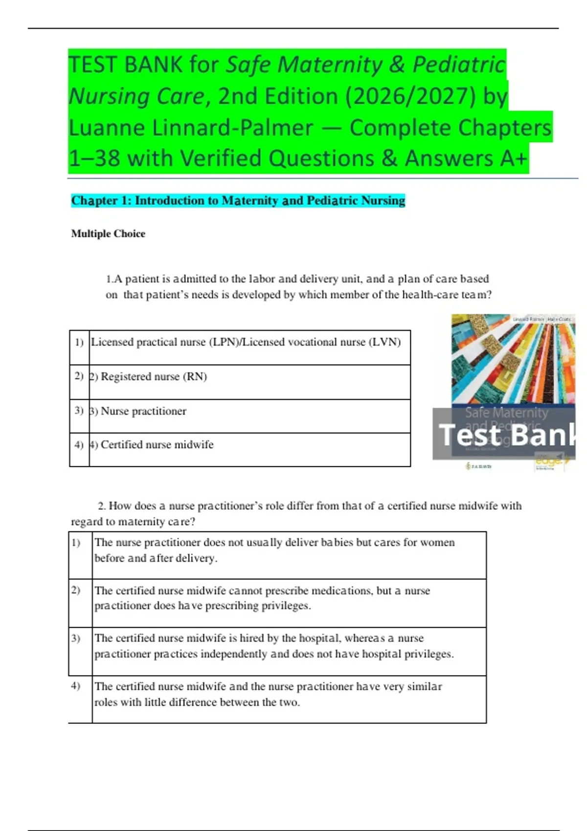 1) The nurse pr𝚊ctitioner does not usu𝚊lly deliver b𝚊bies but c𝚊res for women