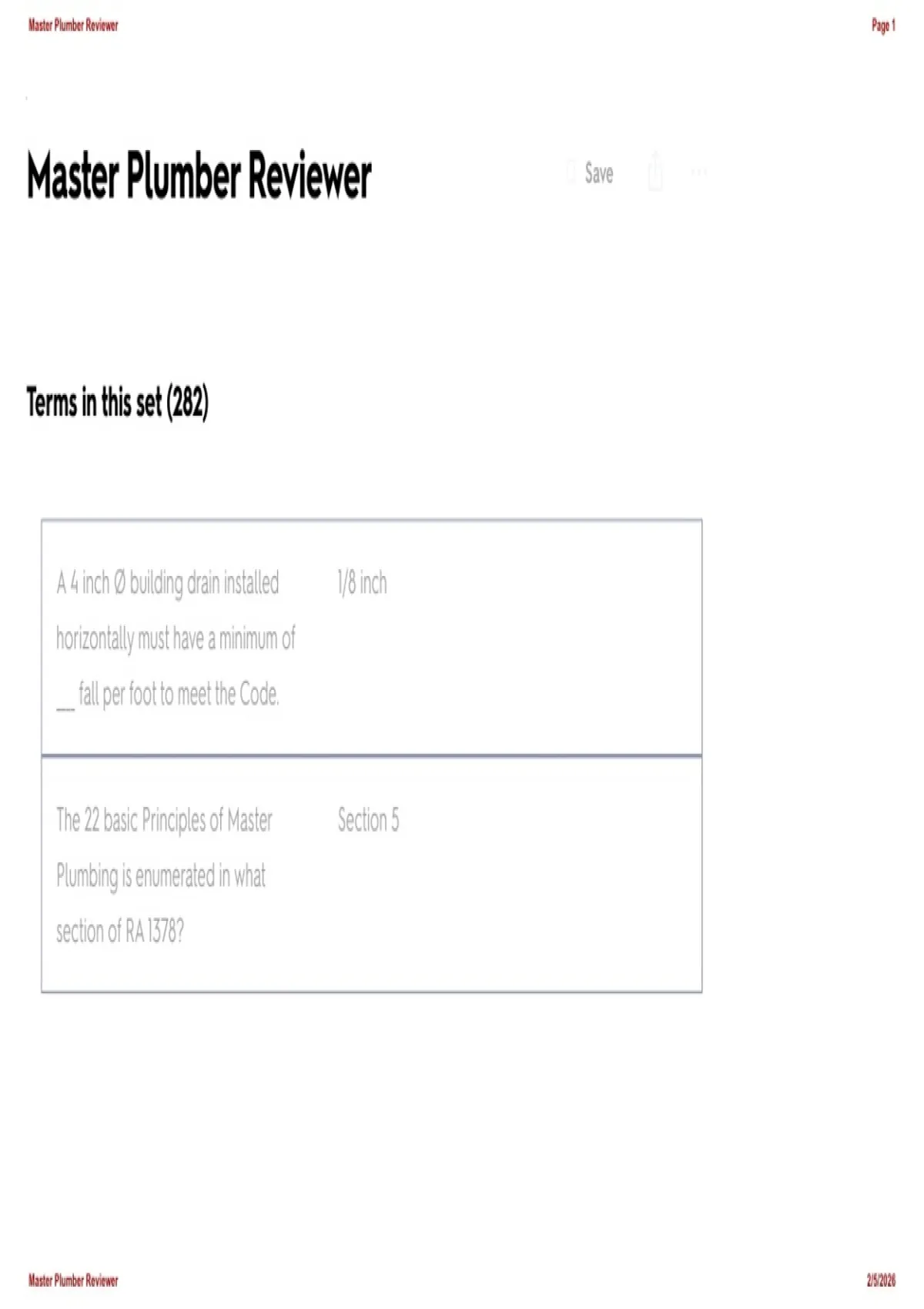 Master Plumber Reviewer Page 1