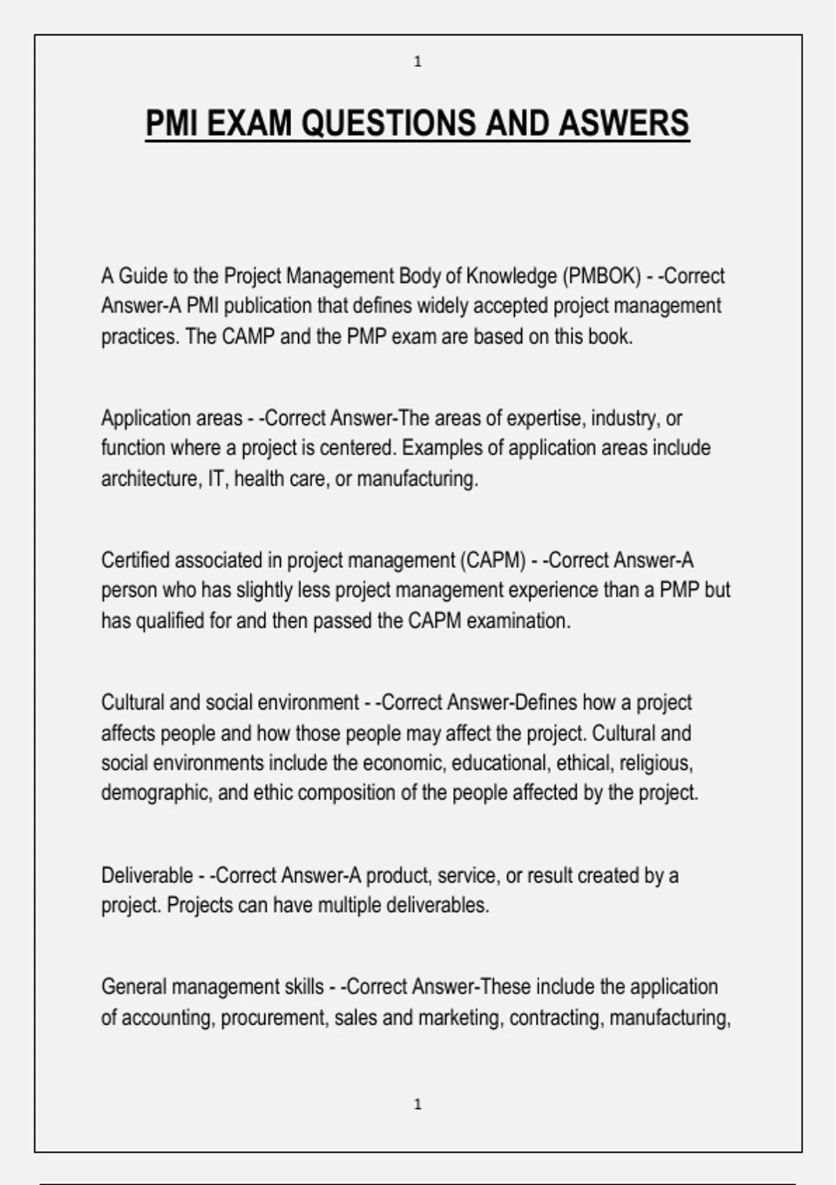 PMI EXAM QUESTIONS AND ASWERS