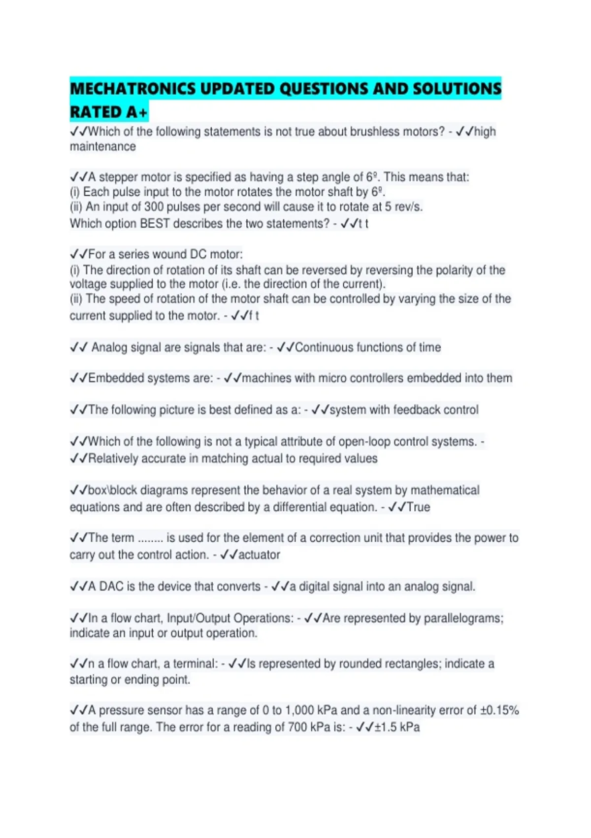 ✔✔Which of the following is not a typical attribute of open-loop control systems. -