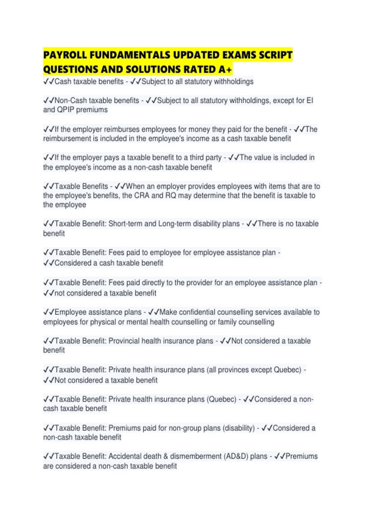 ✔✔Taxable Benefit: Private health insurance plans (Quebec) - ✔✔Considered a non-