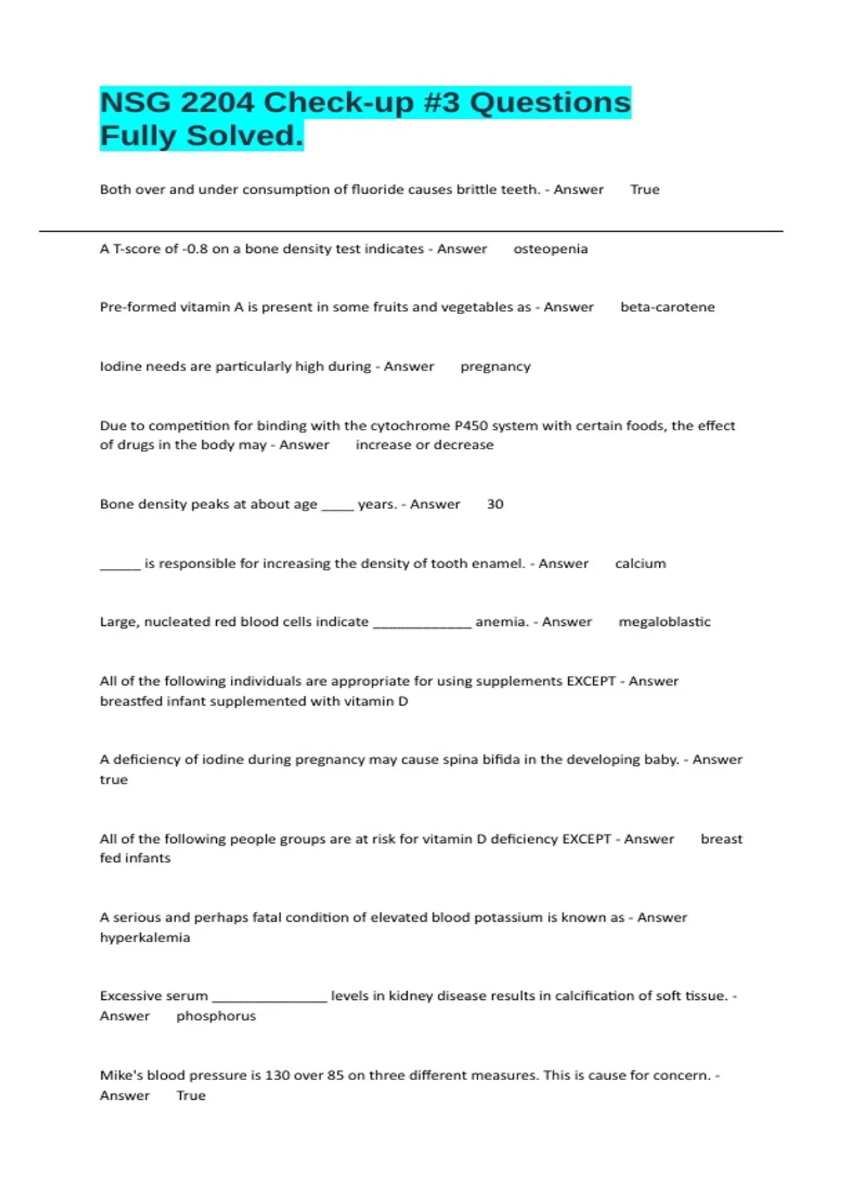 Bone density peaks at about age ____ years. - Answer 30