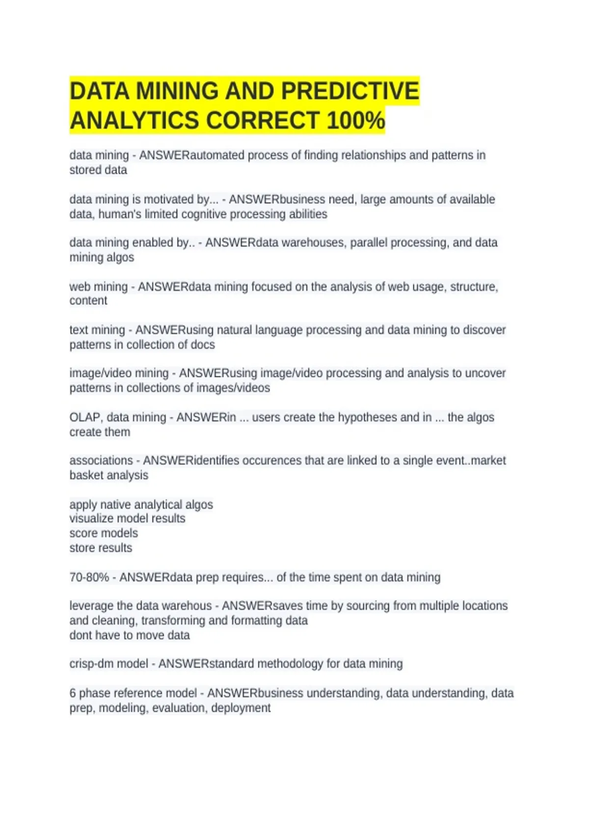 data mining - ANSWERautomated process of finding relationships and patterns in