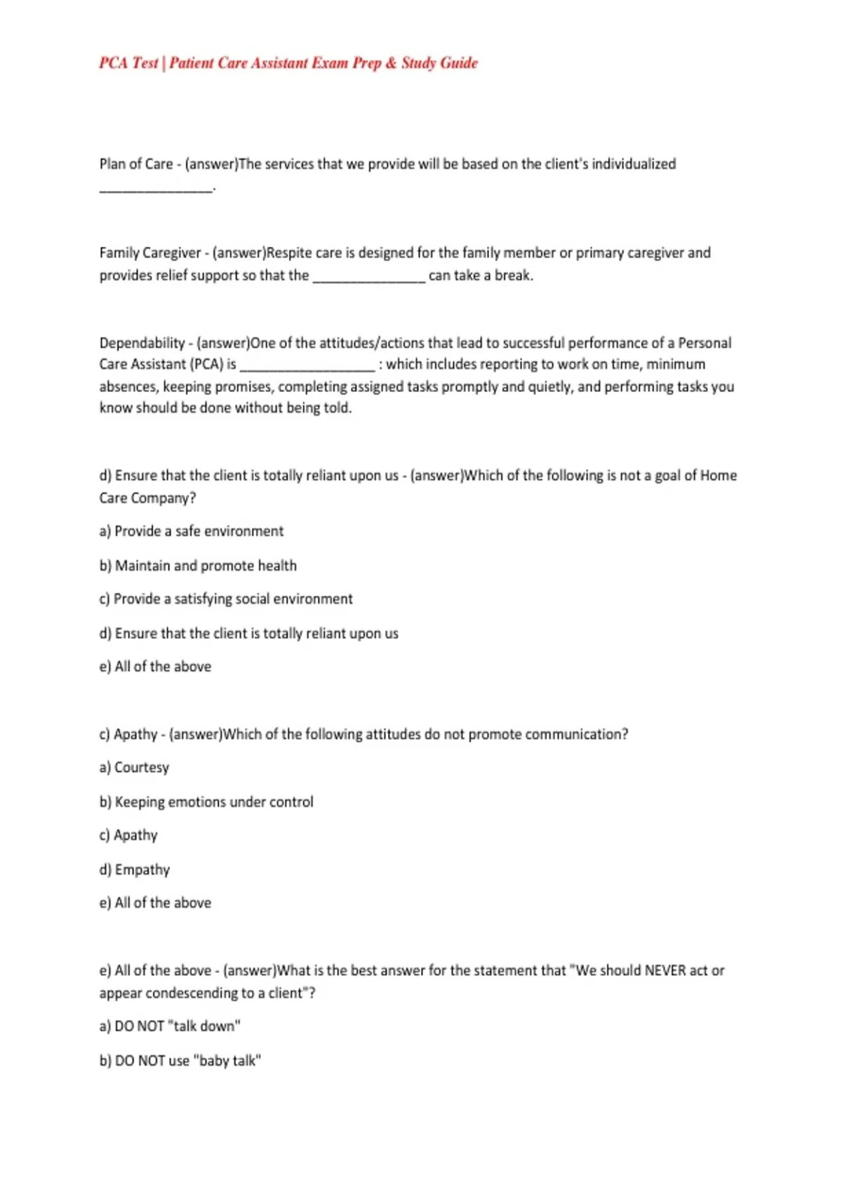 PCA Test | Patient Care Assistant Exam Prep & Study Guide