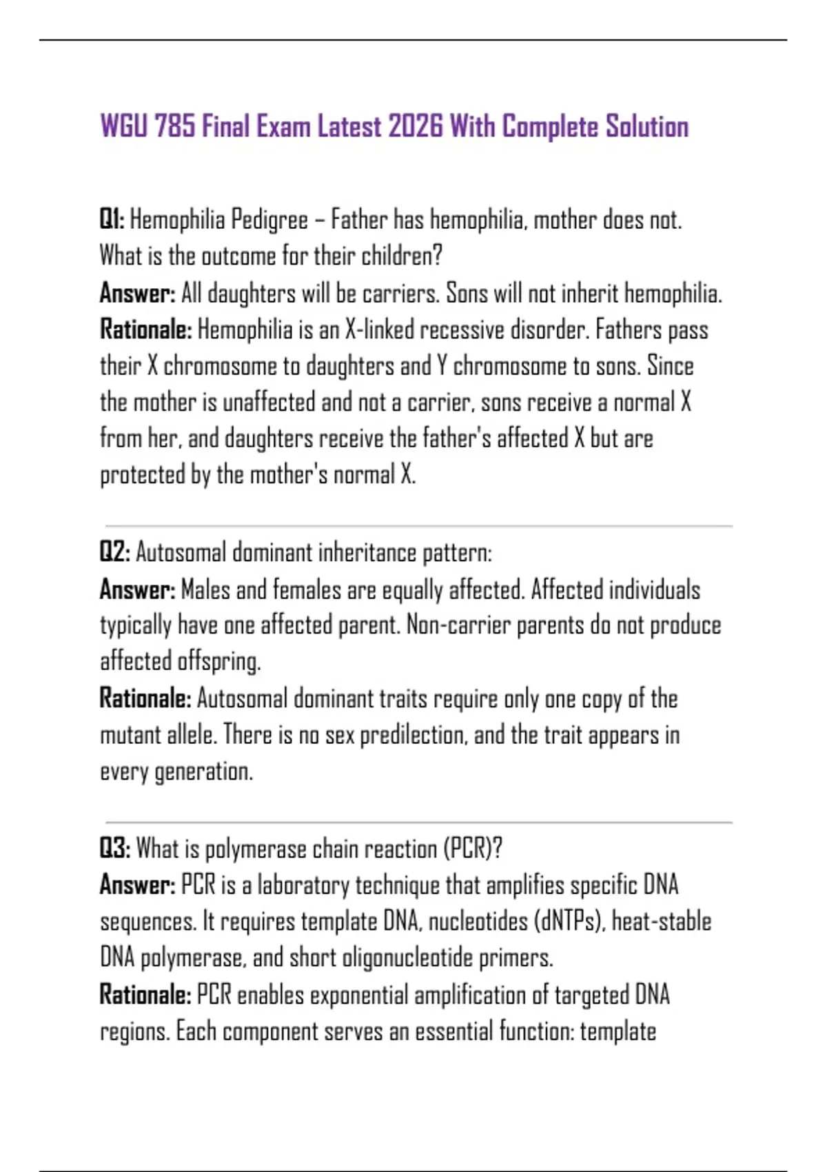 Q1: Hemophilia Pedigree – Father has hemophilia, mother does not.