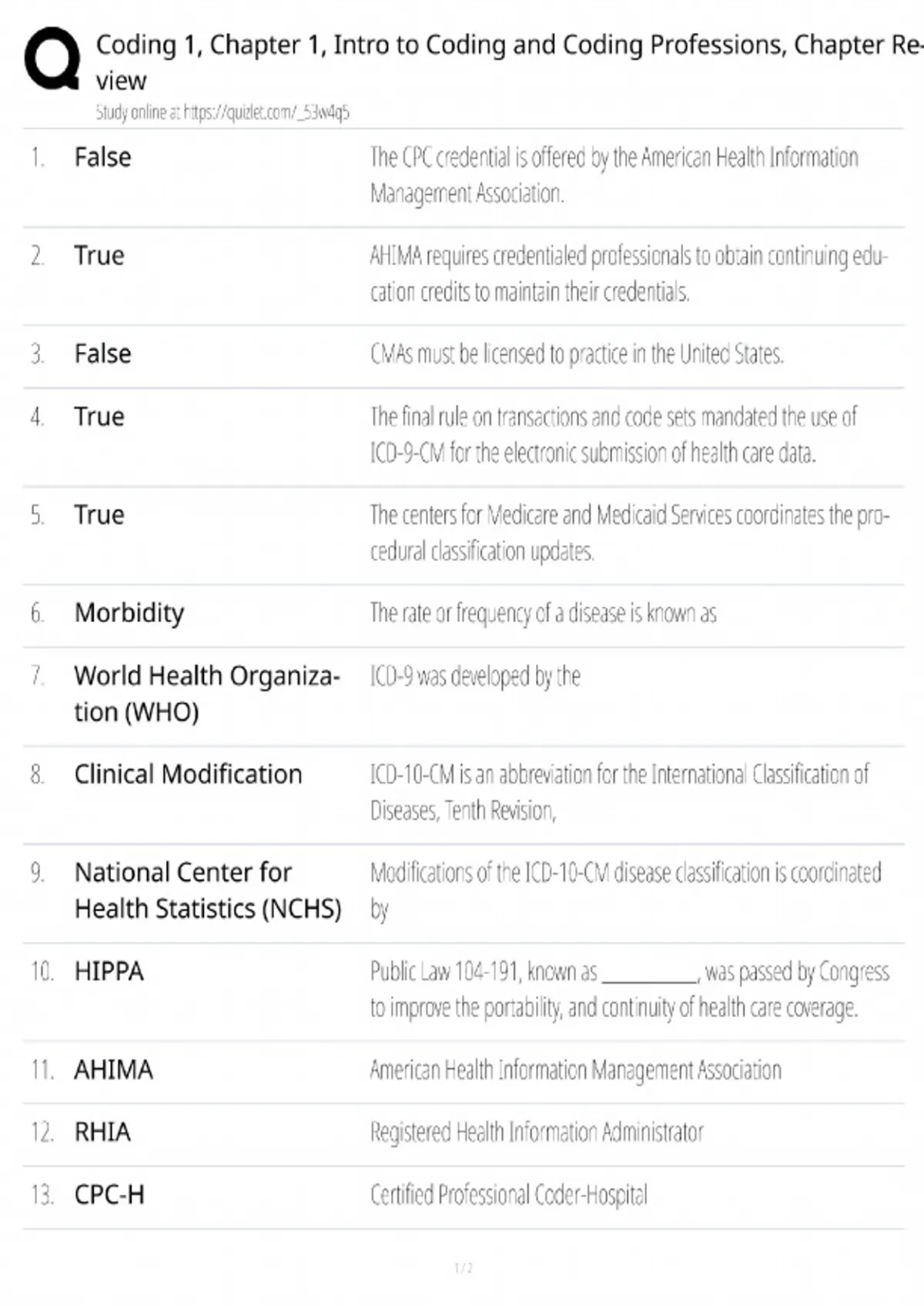 Coding 1 Chapter 1 / Intro to Coding and Coding Professions / Chapter Review 2025 / Score 100% Study Guide & Test Bank