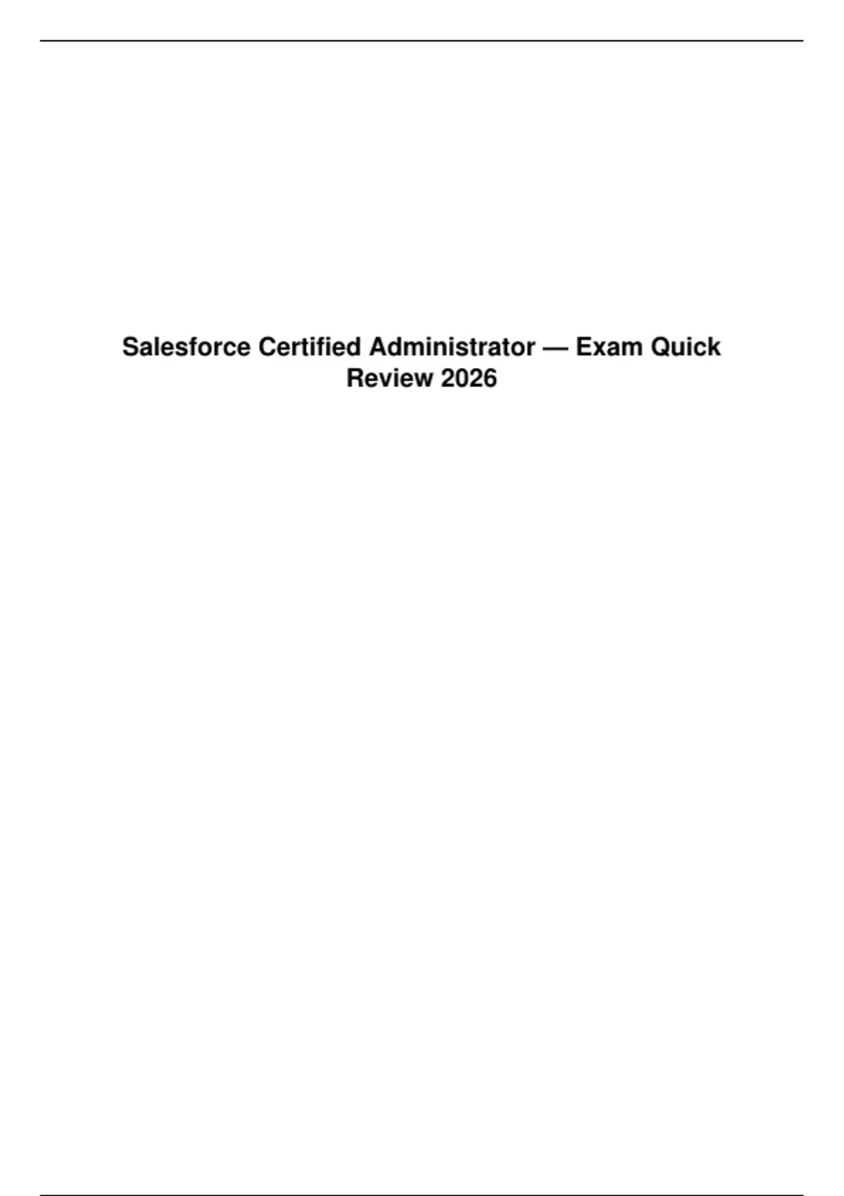 Comprehensive revision for the Salesforce Admin Exam. Focuses on the 2026 platform updates, including advanced Flow automation and Lightning experience setup. A must-have for aspiring Admins!