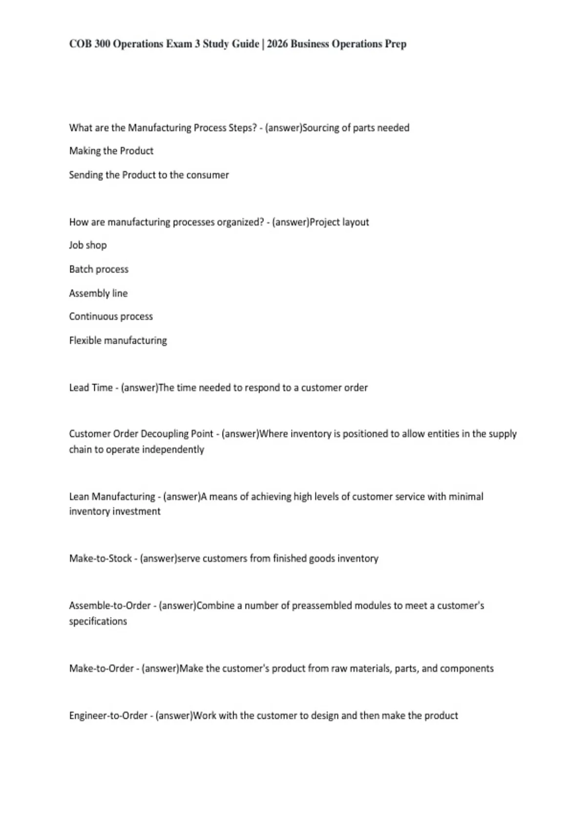 , COB 300 Operations Exam 3 Study Guide | 2026 Business Operations Prep