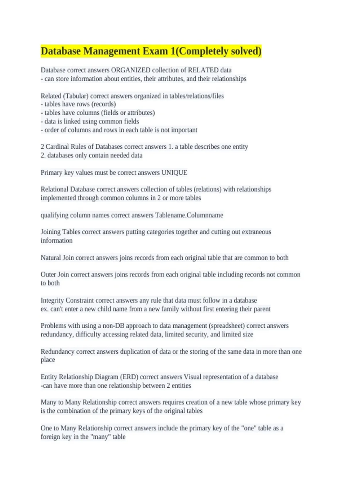 Database Management Exam 1(Completely solved)