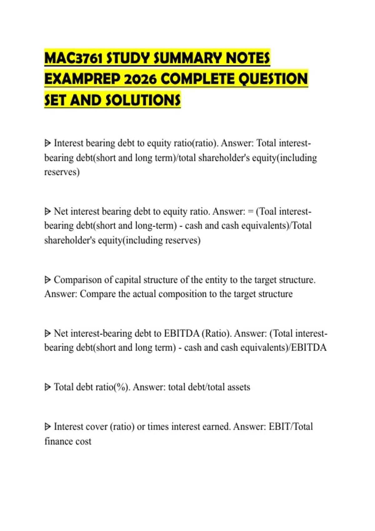⩥ Interest bearing debt to equity ratio(ratio). Answer: Total interest-