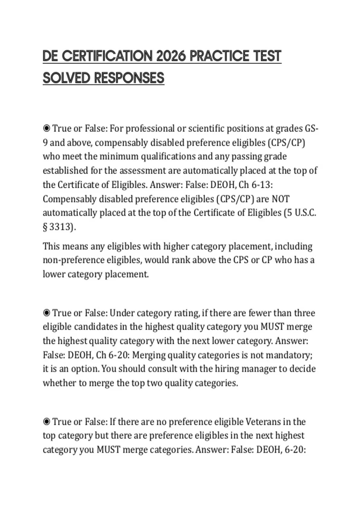 the Certificate of Eligibles. Answer: False: DEOH, Ch 6-13: