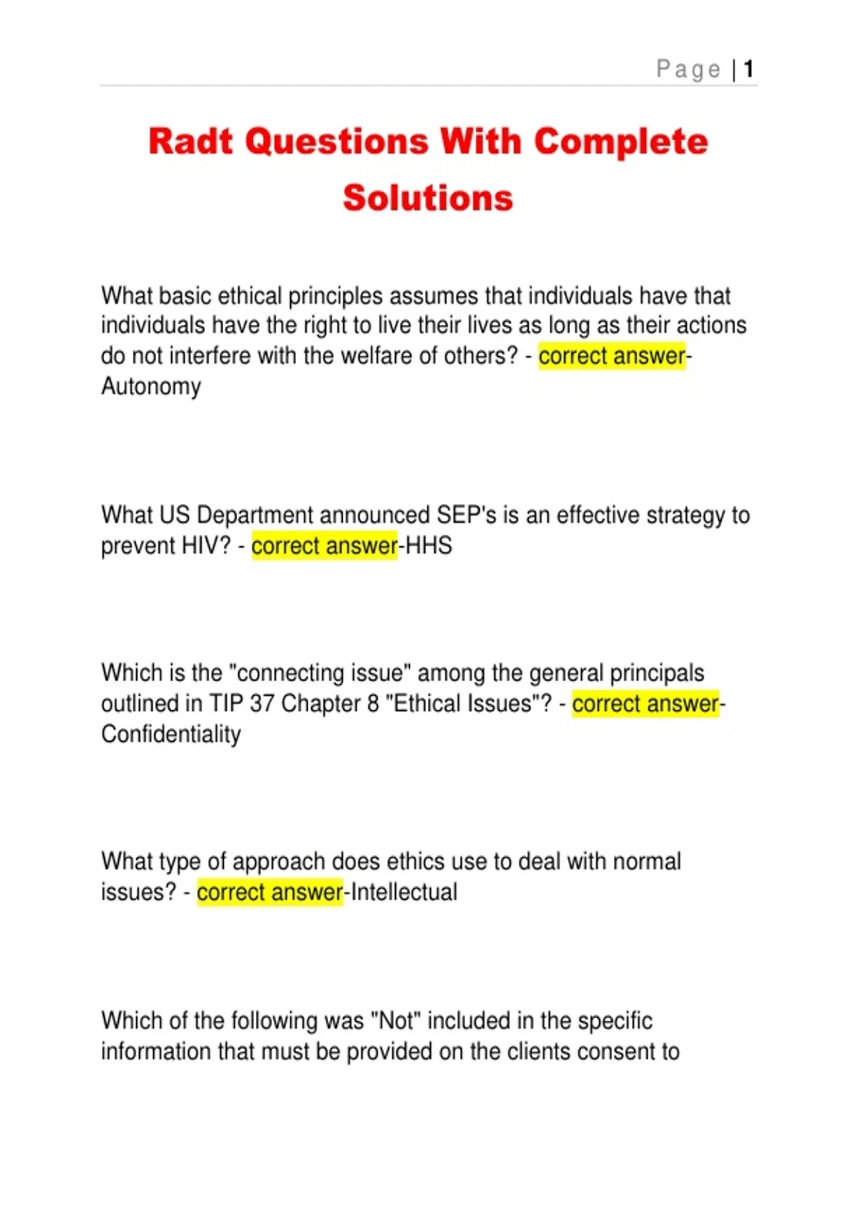 Radt Questions With Complete