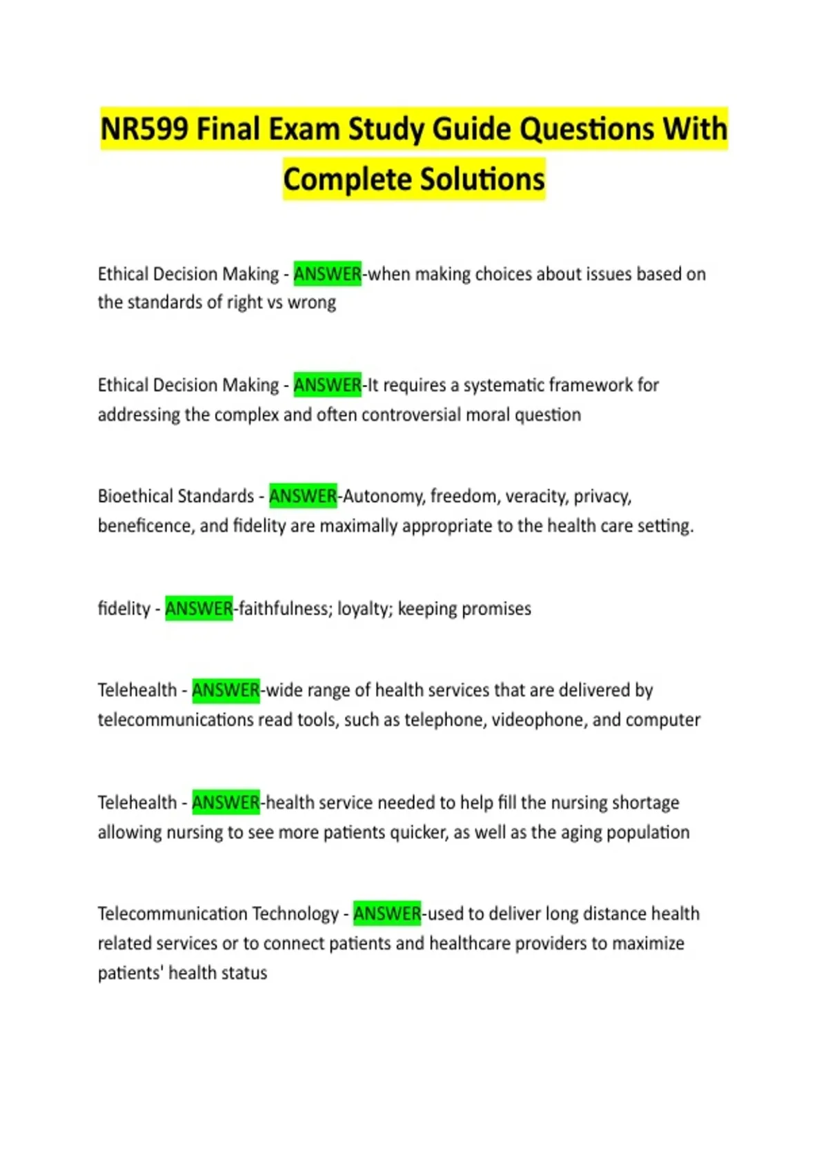 NR599 Final Exam Study Guide Questions With Complete Solutions