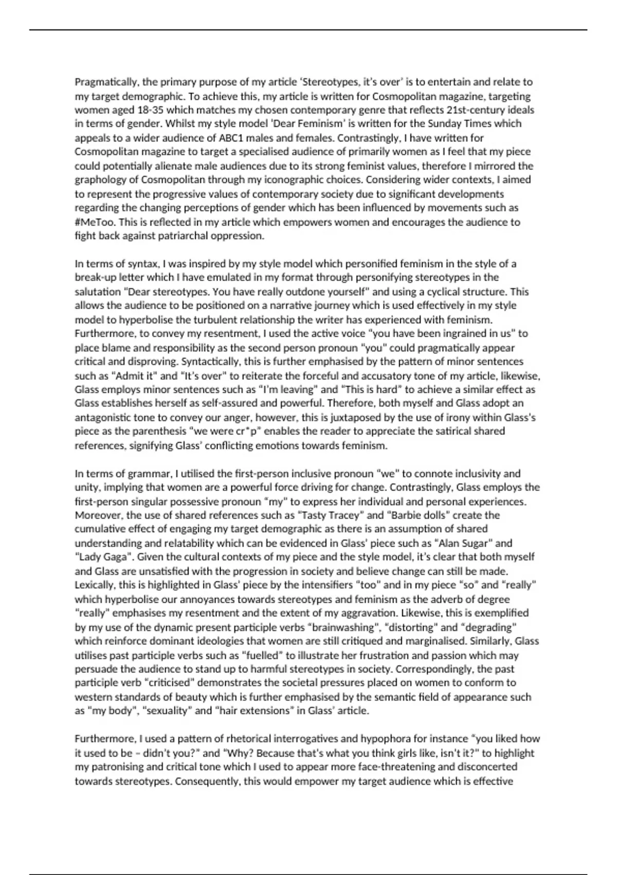 in terms of gender. Whilst my style model ‘Dear Feminism’ is written for the Sunday Times which