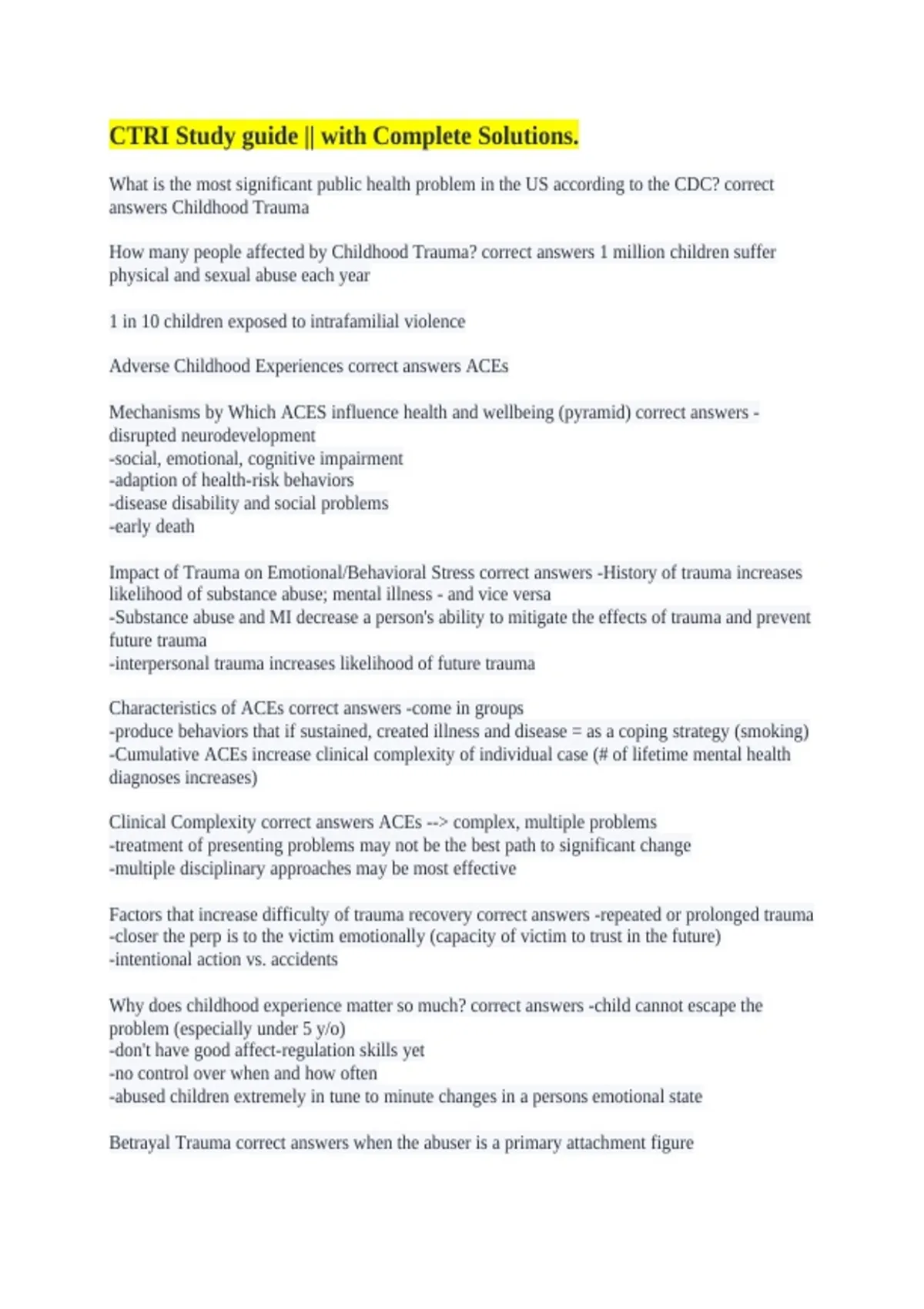CTRI Study guide || with Complete Solutions.