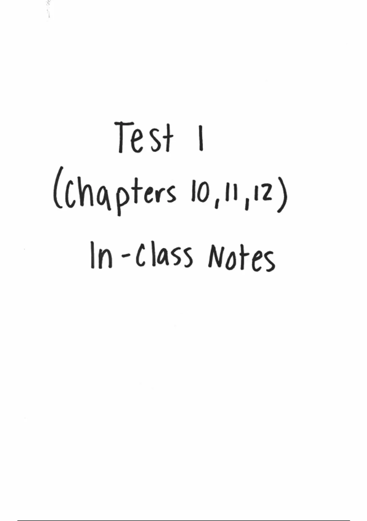 Handwritten notes from lectures leading up to test 1 (covering chapters 10,11 and 12)