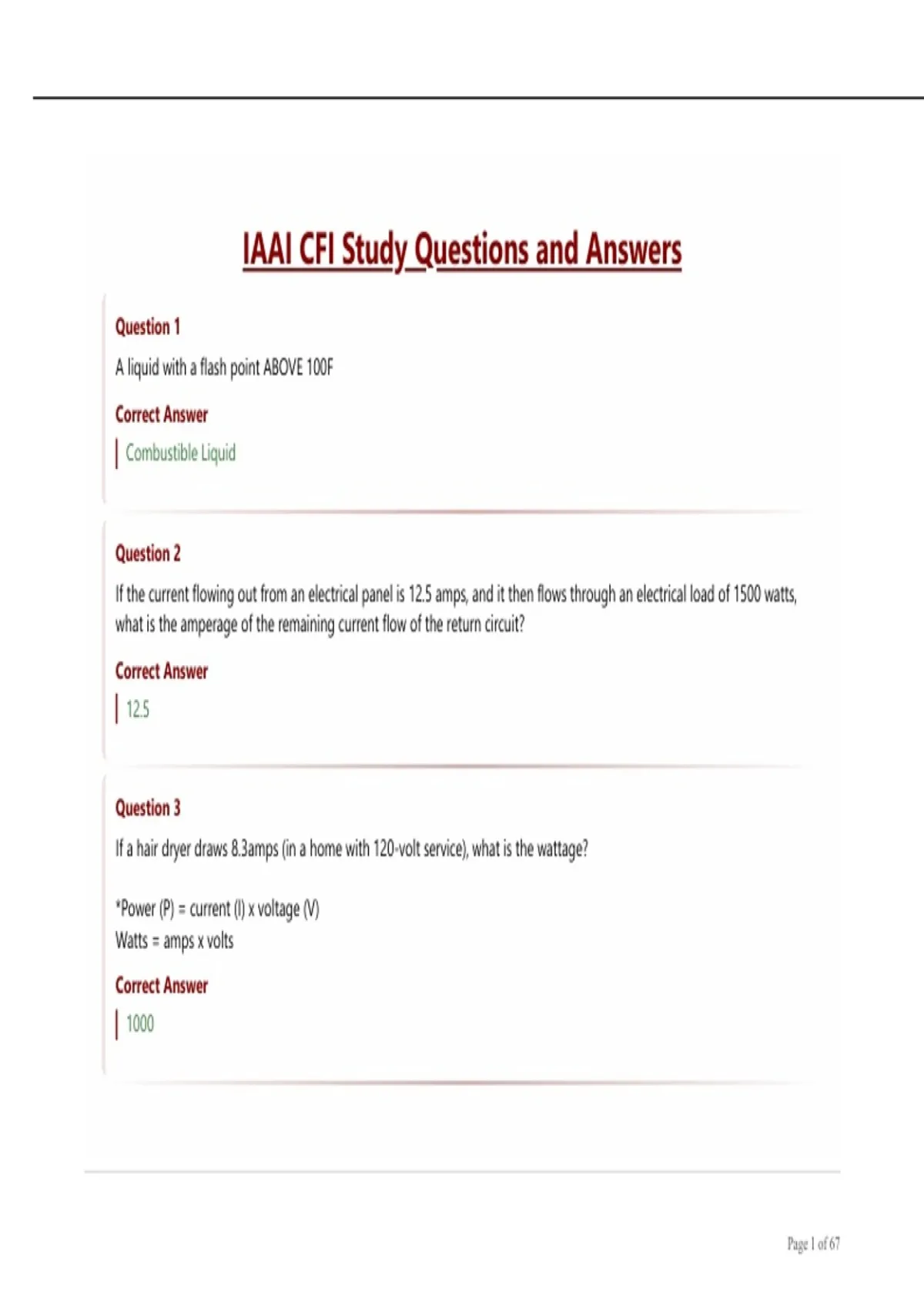IAAI CFI Study Questions and Answers
