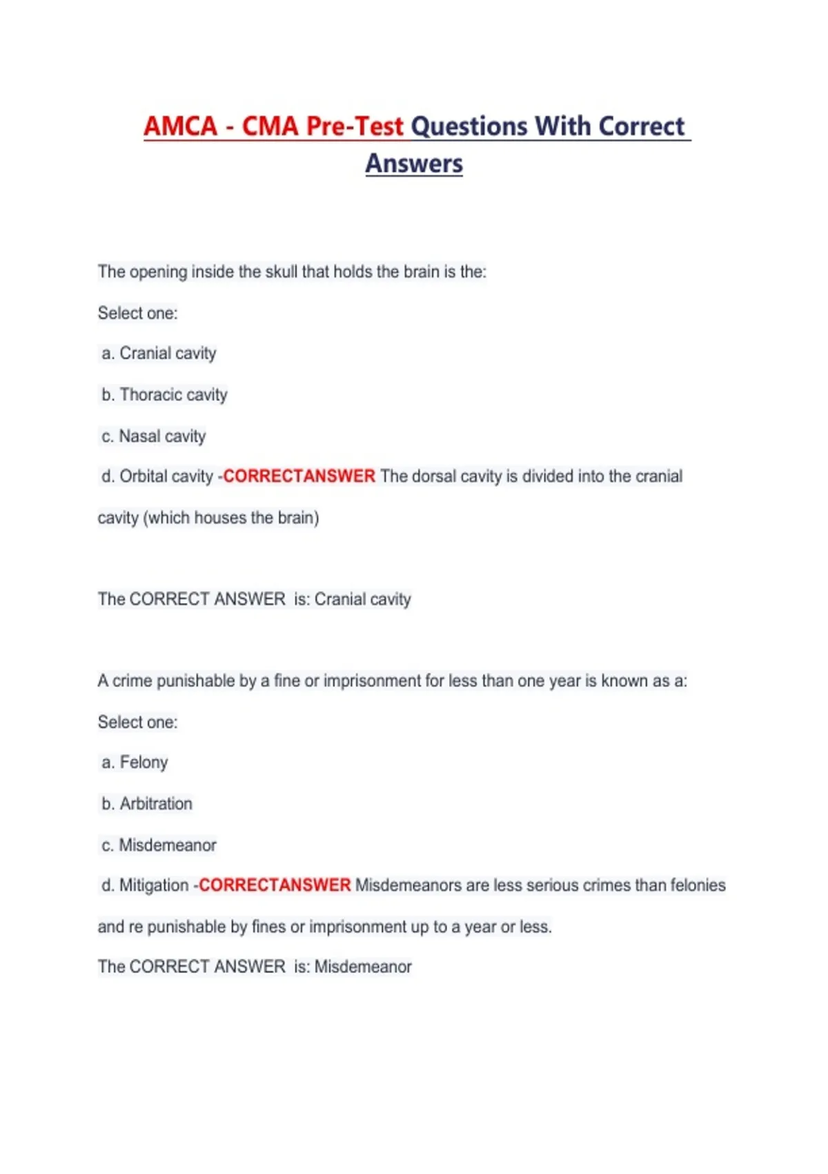 AMCA - CMA Pre-Test Questions With Correct Answers