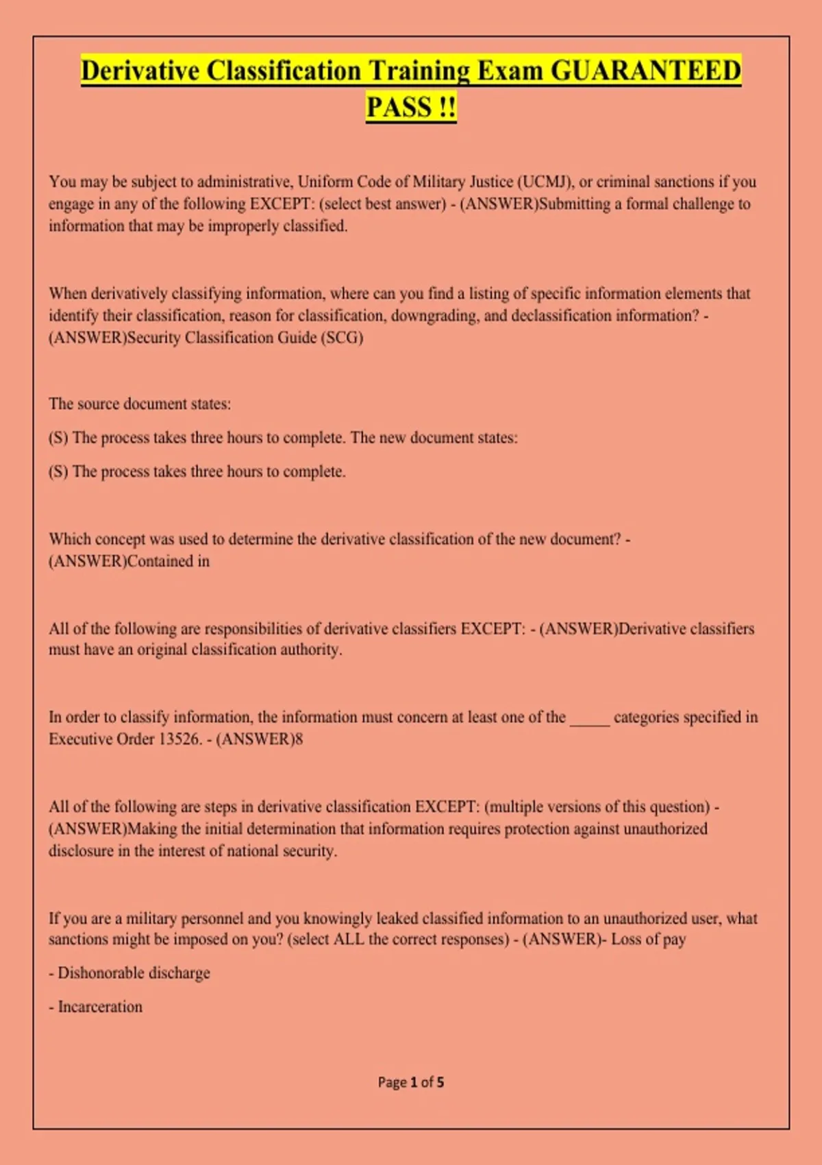Derivative Classification Training Exam GUARANTEED