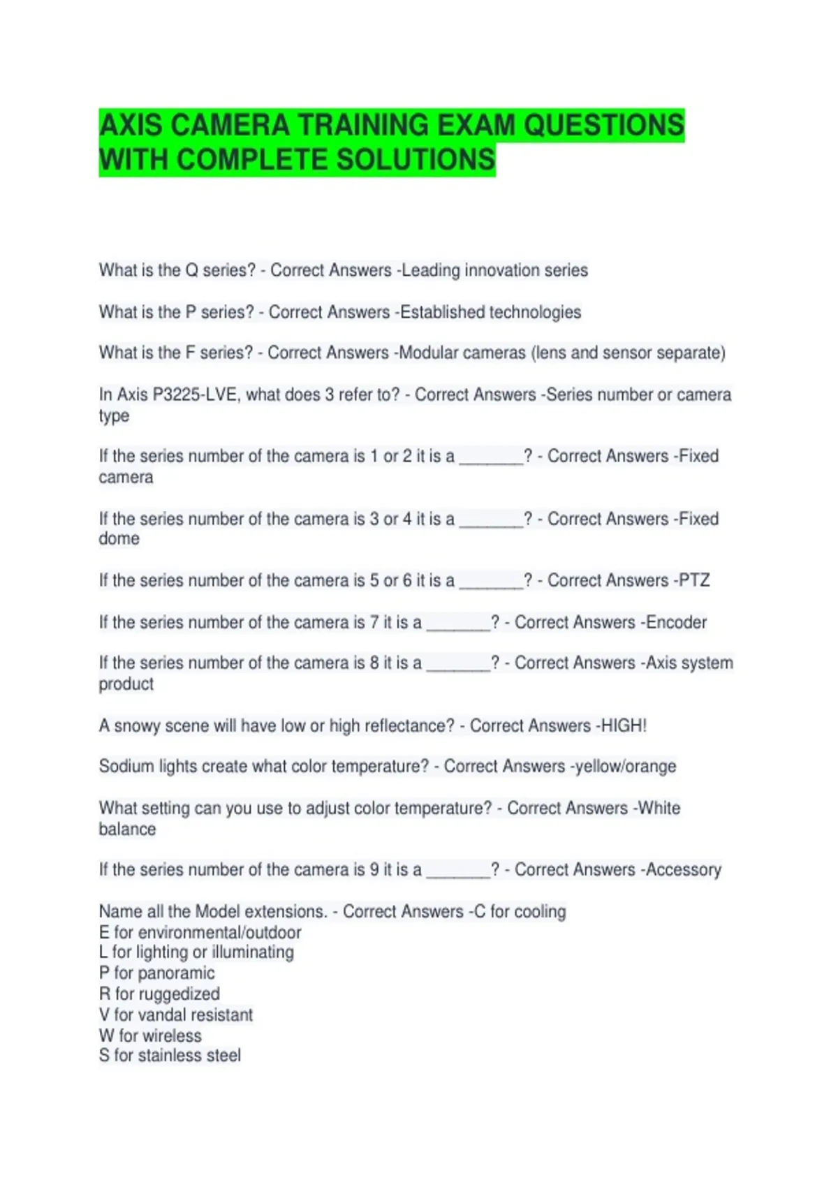 AXIS CAMERA TRAINING EXAM QUESTIONS WITH COMPLETE SOLUTIONS