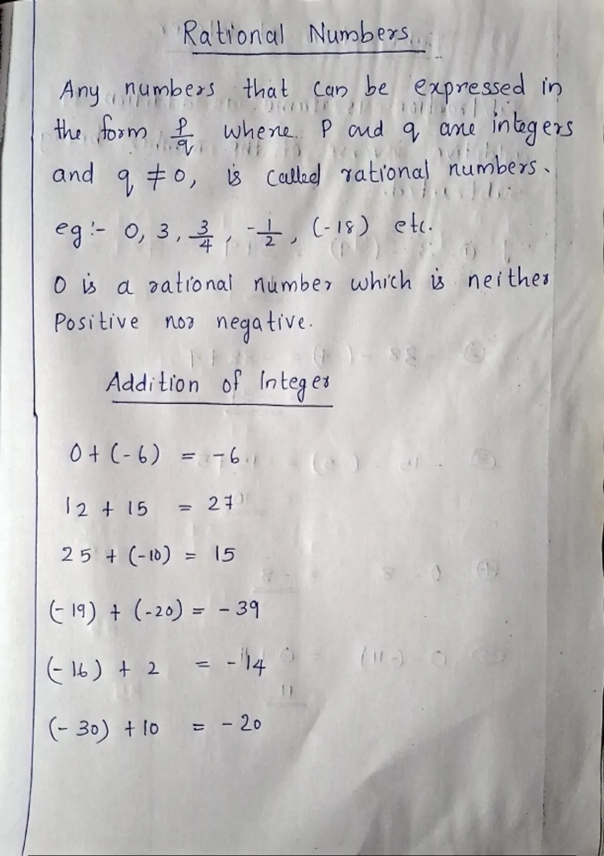 Addition of Integ es
