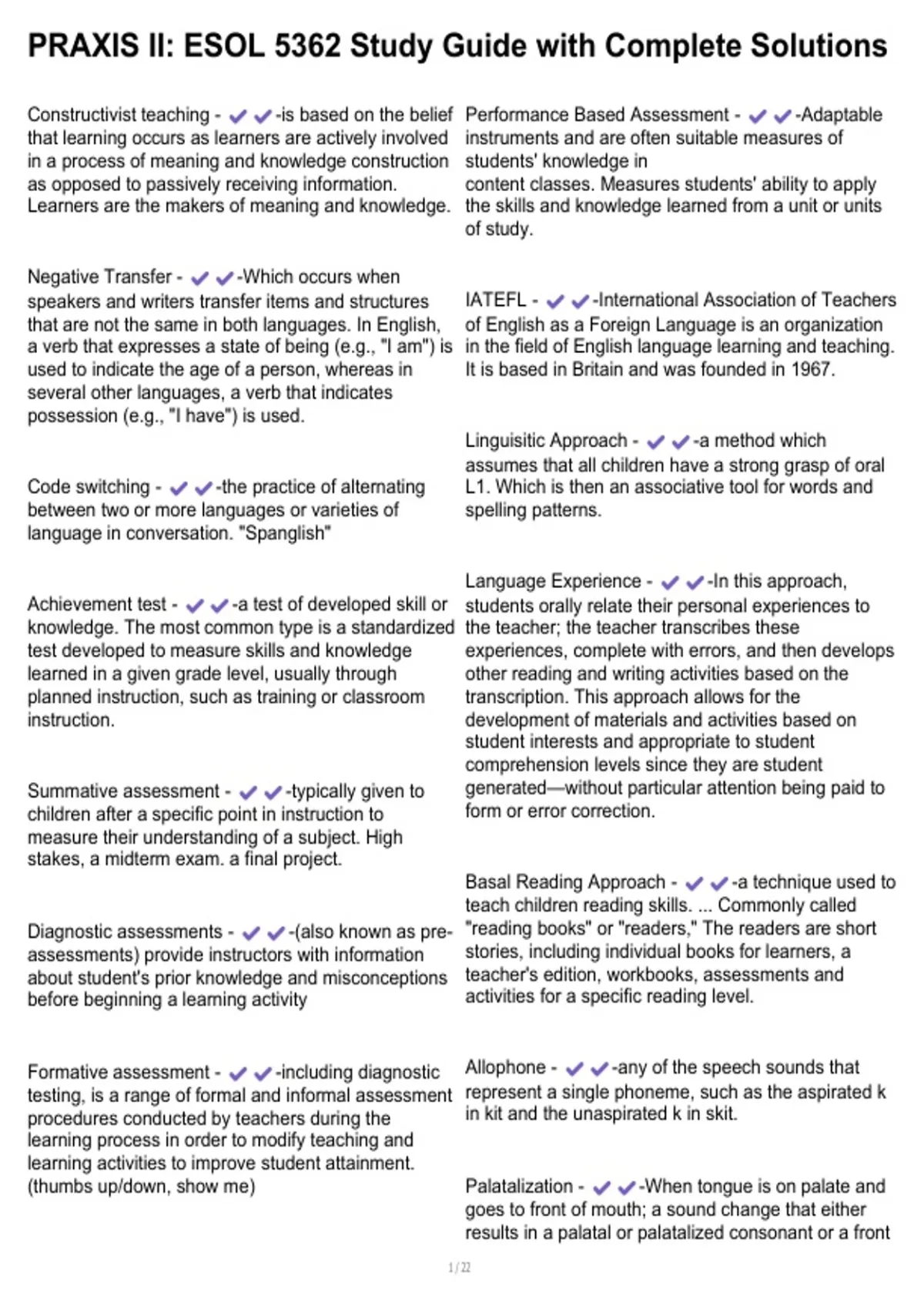 , PRAXIS II: ESOL 5362 Study Guide with Complete Solutions