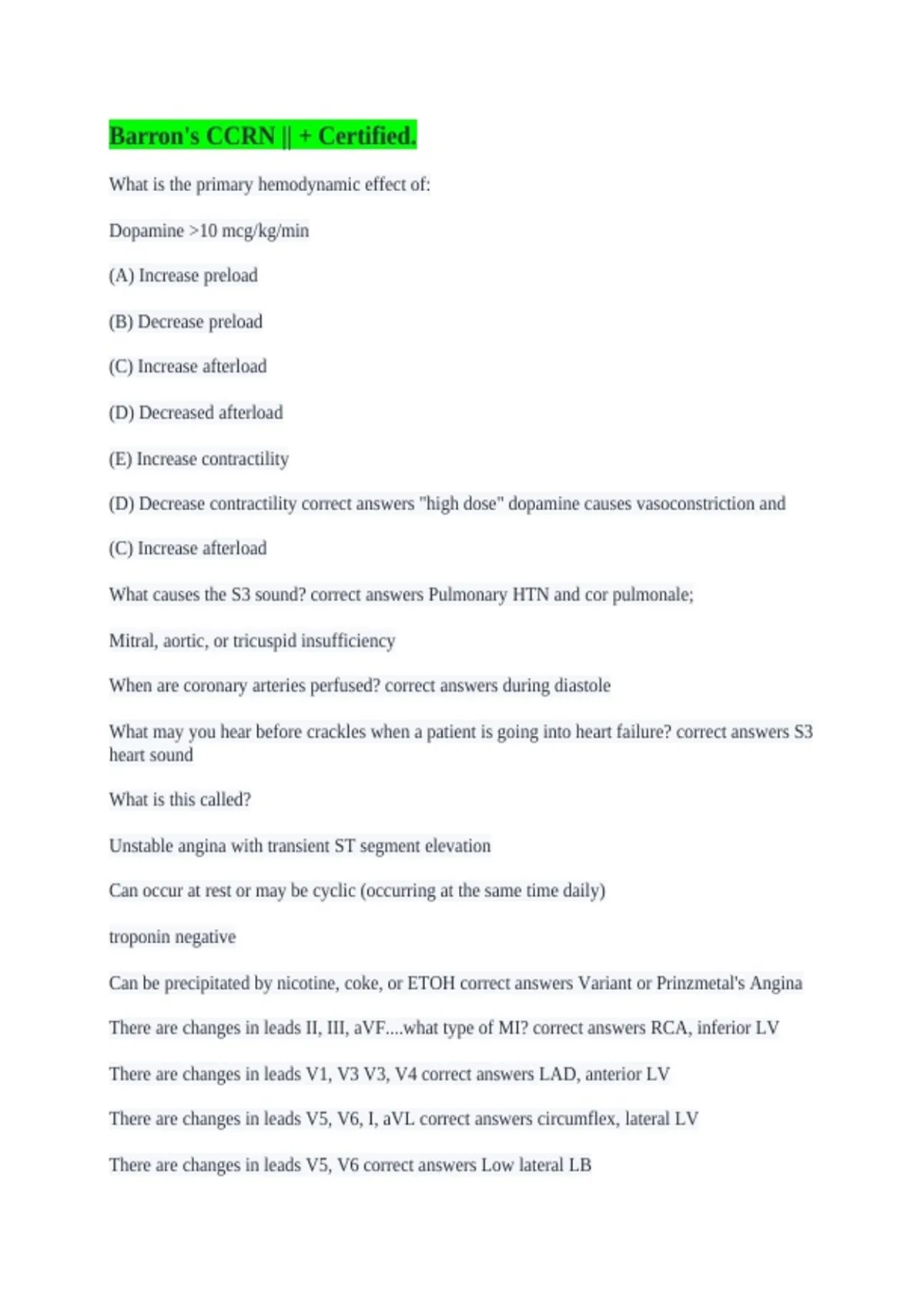IABP correct answers inflates (INCREASES CORONARY ARTERY PERFUSION)