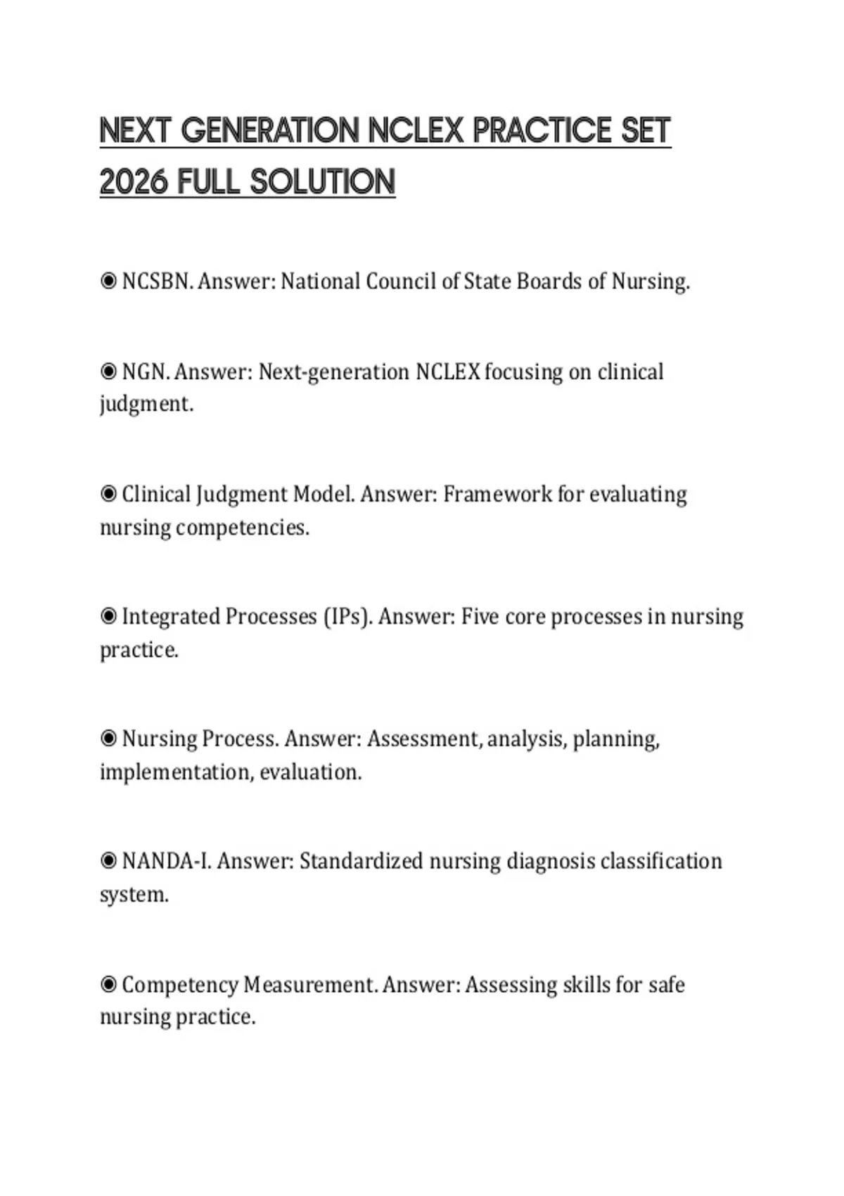 ◉ NGN. Answer: Next-generation NCLEX focusing on clinical
