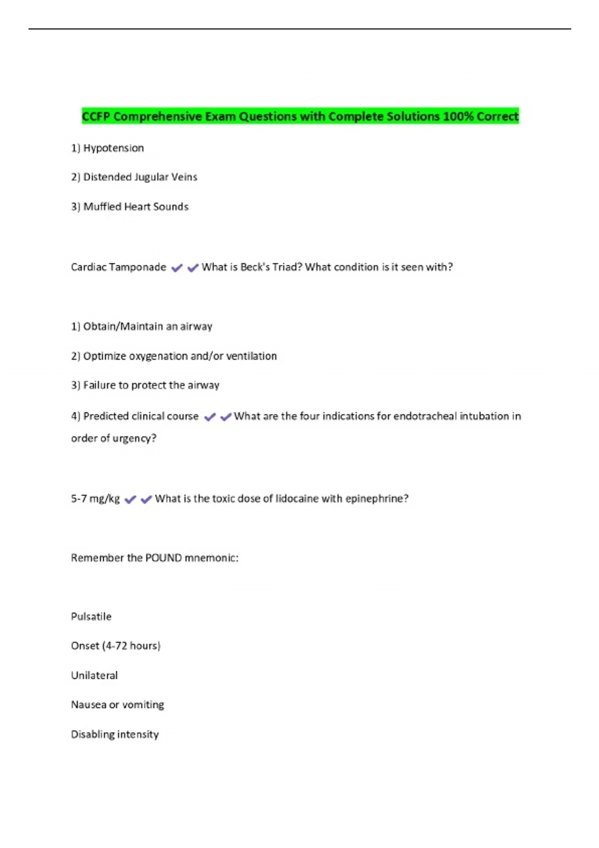 CCFP Comprehensive Exam Questions with Complete Solutions