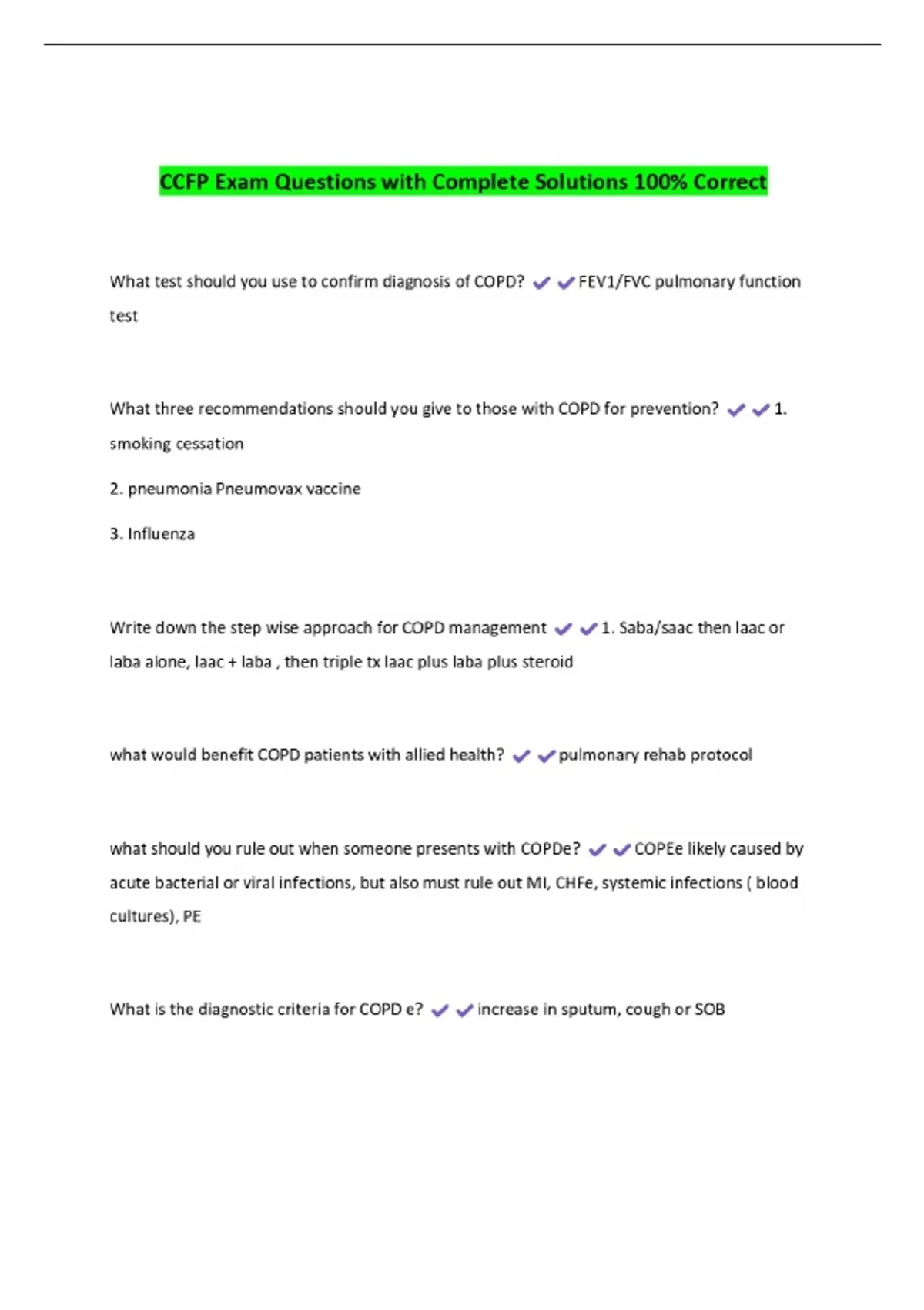 Full Package-::CCFP Exams with CORRECT Answers(Latest)
