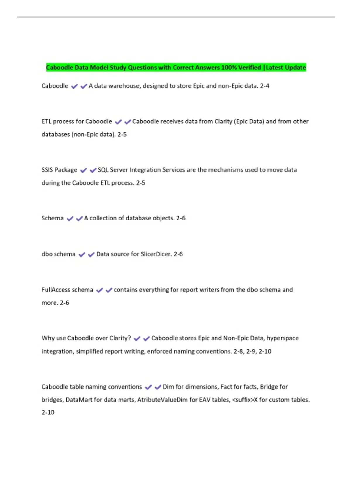 Caboodle Data Model Study Questions with Correct Answers 100% Verified