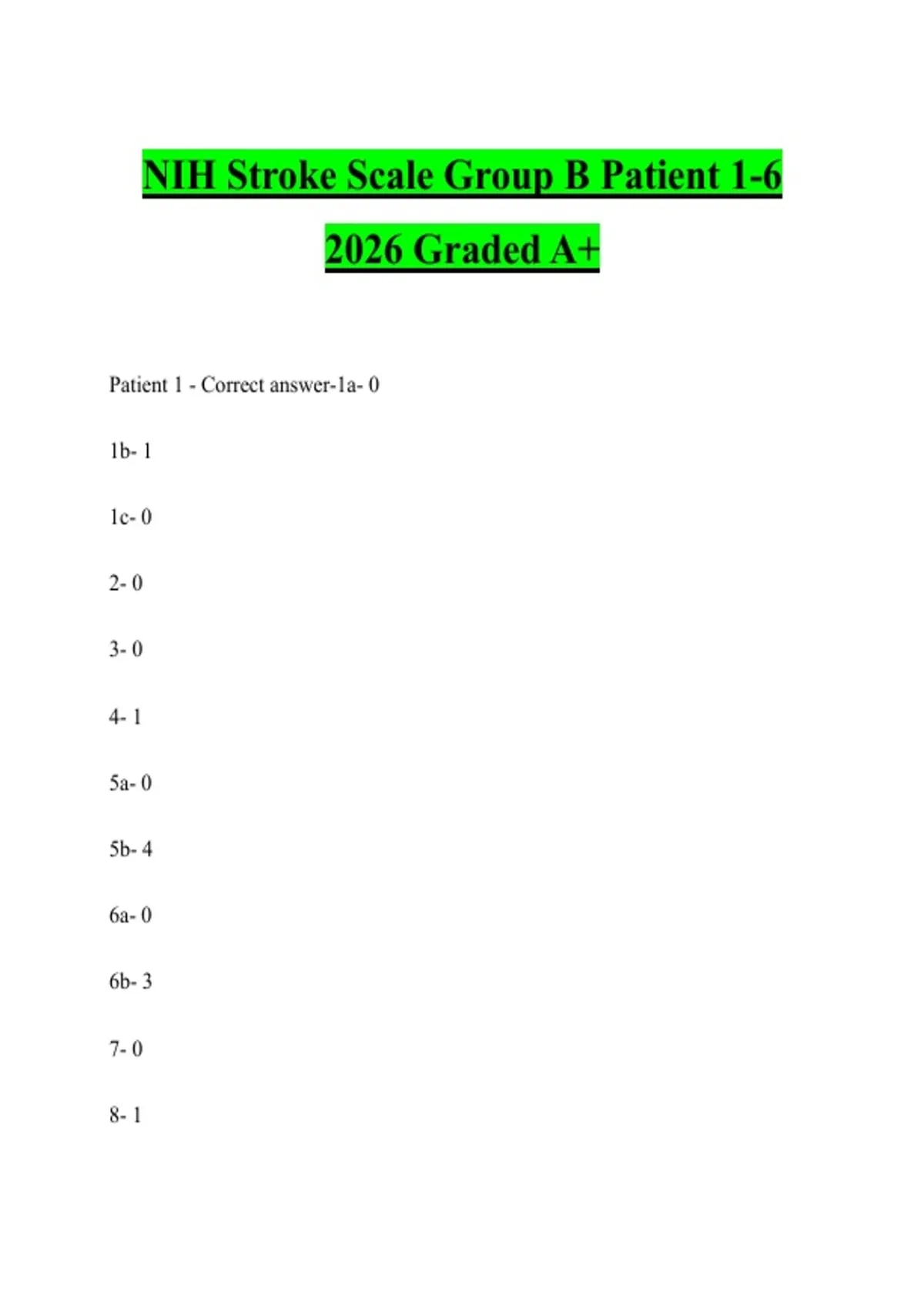 Patient 1 - Correct answer-1a- 0
