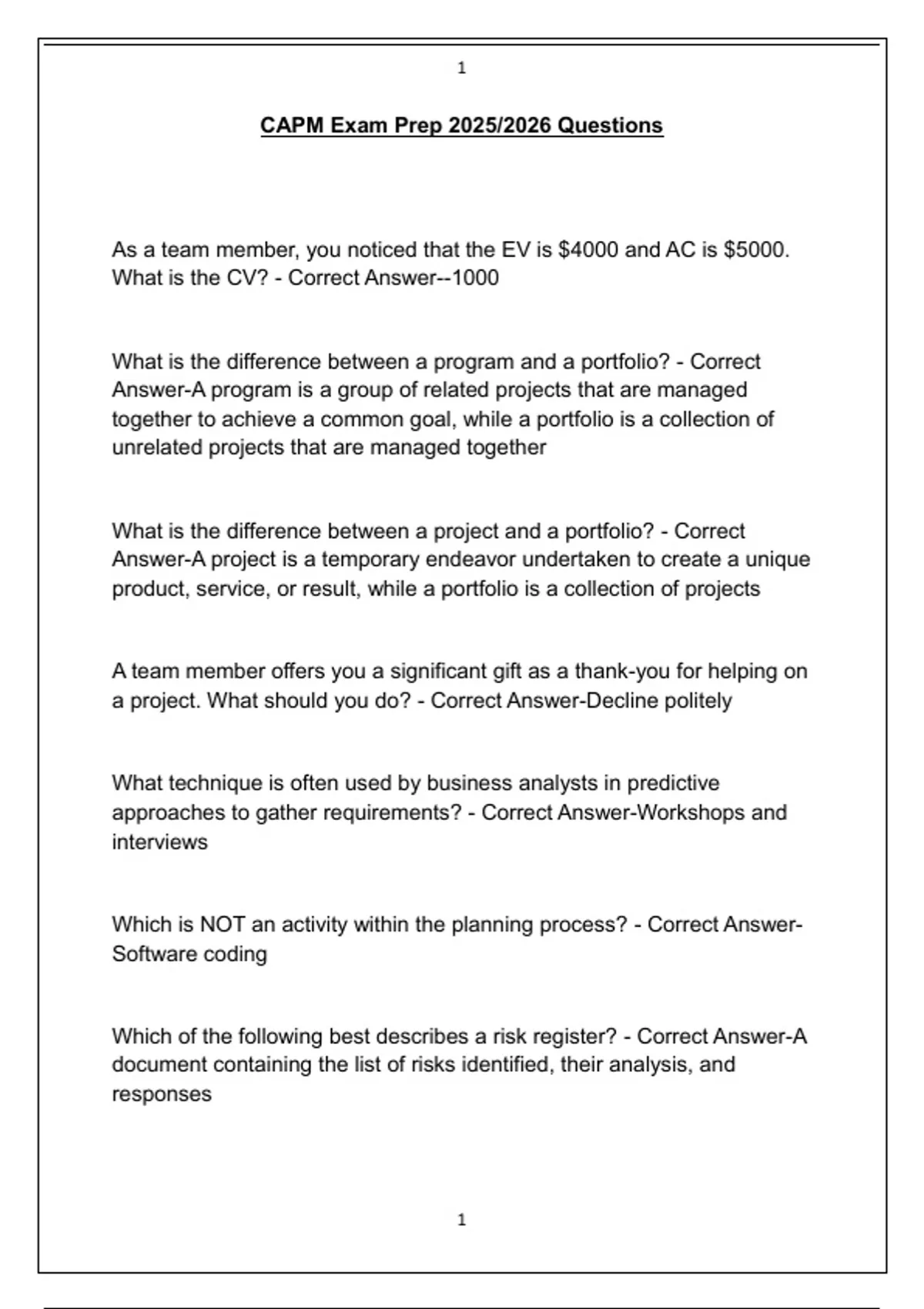 CAPM Exam Prep 2025/2026 Questions