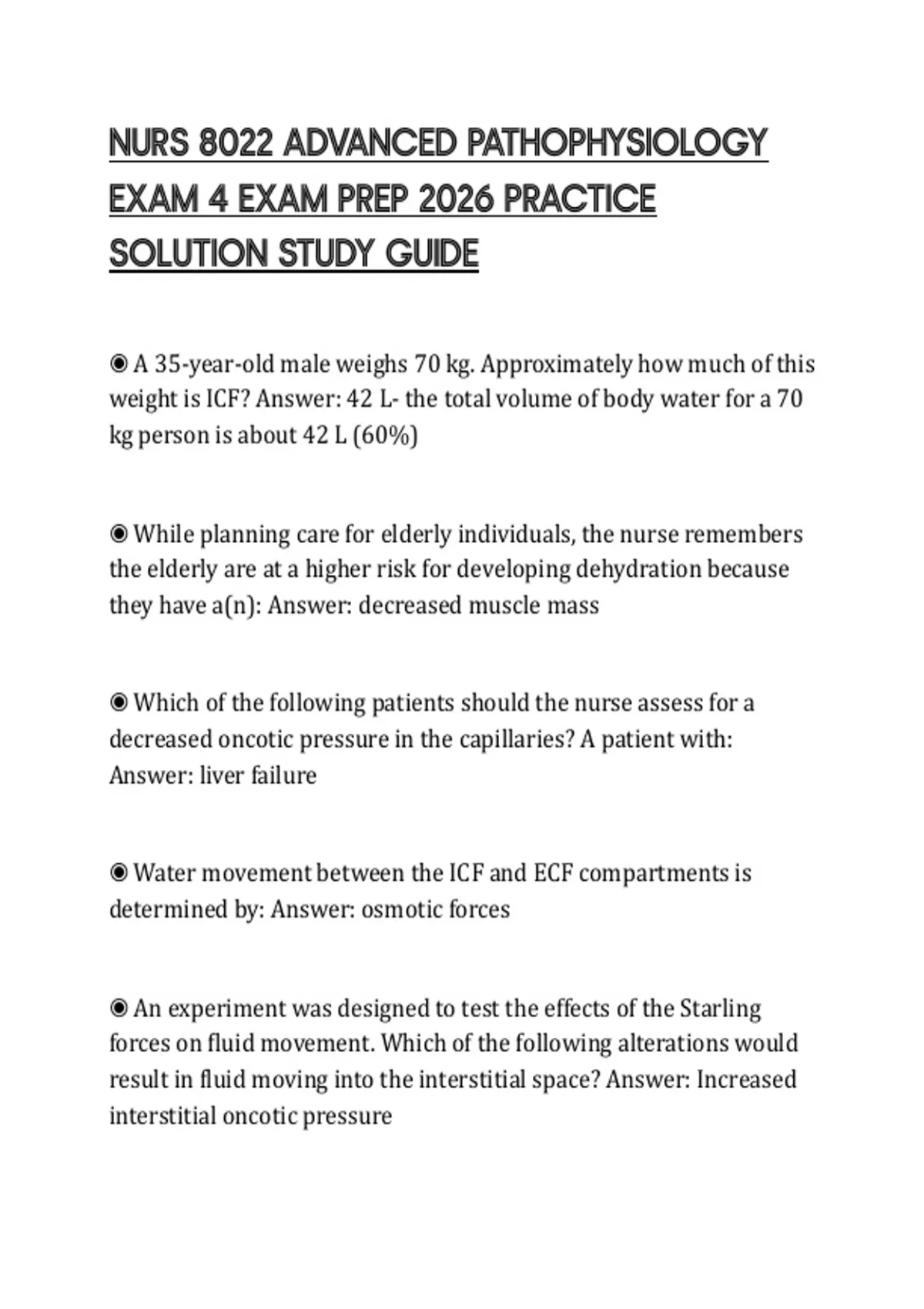 NURS 8022 ADVANCED PATHOPHYSIOLOGY EXAM 4 EXAM PREP 2026 PRACTICE SOLUTION STUDY GUIDE