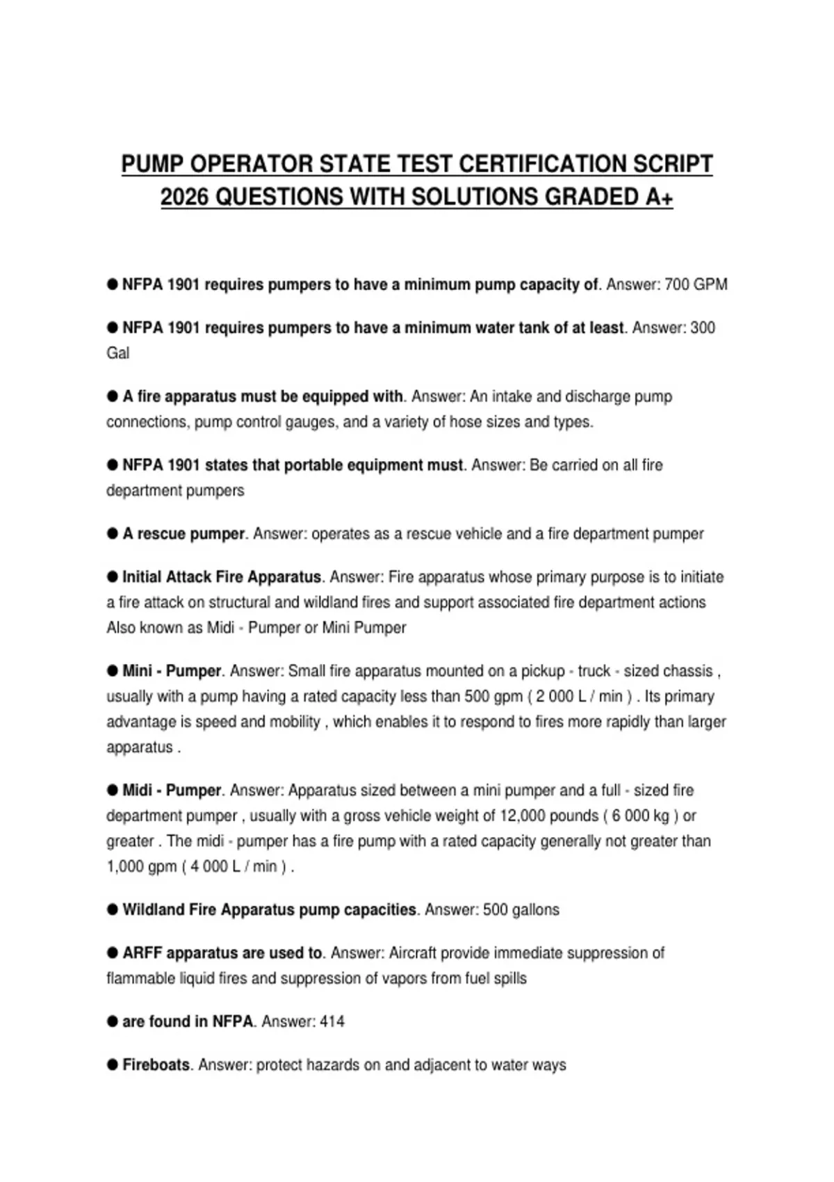 PUMP OPERATOR STATE TEST CERTIFICATION SCRIPT 2026 QUESTIONS WITH SOLUTIONS GRADED A+
