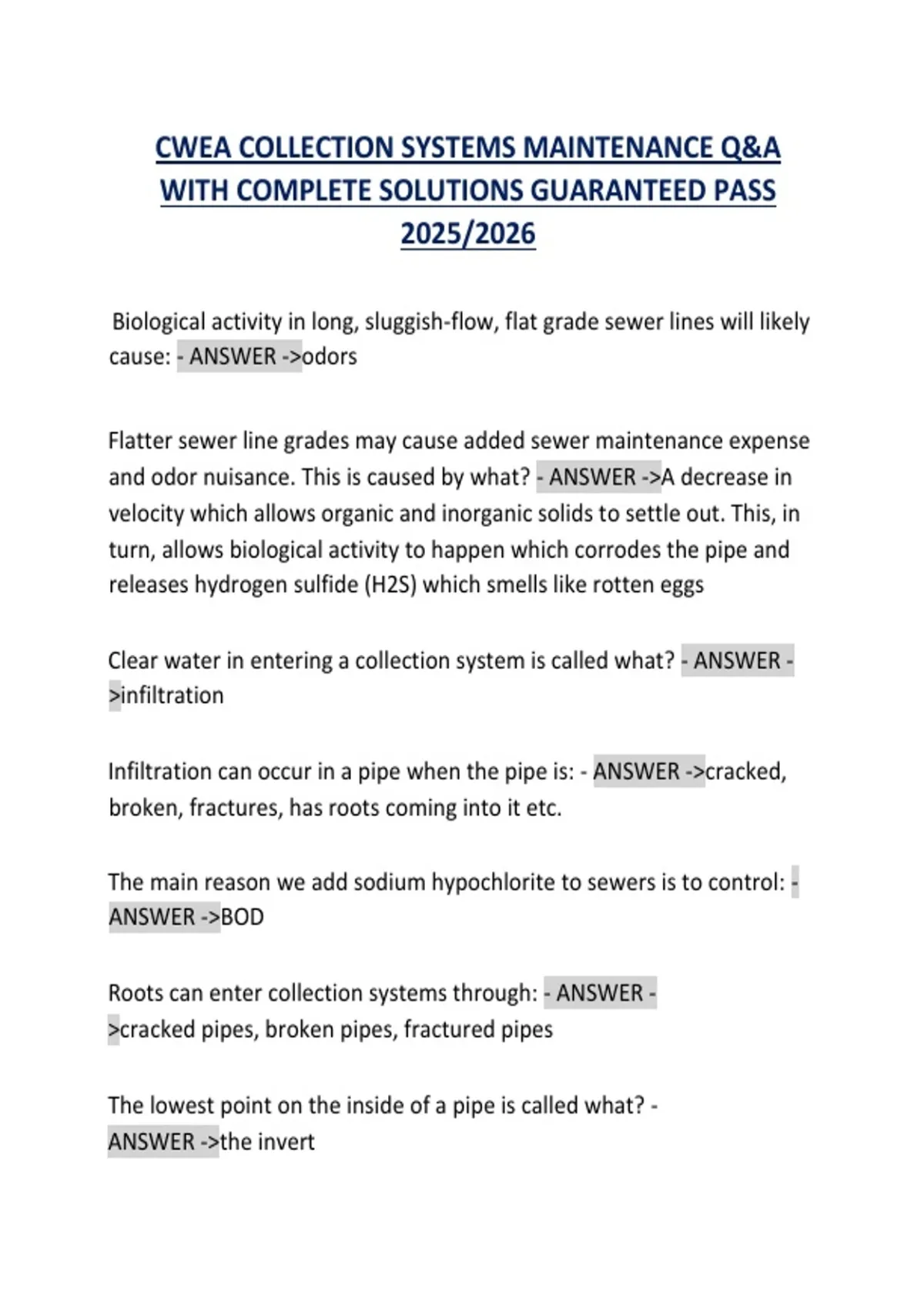 CWEA_COLLECTION_SYSTEMS_MAINTENANCE_Q_A_WITH_COMPLETE_SOLUTIONS