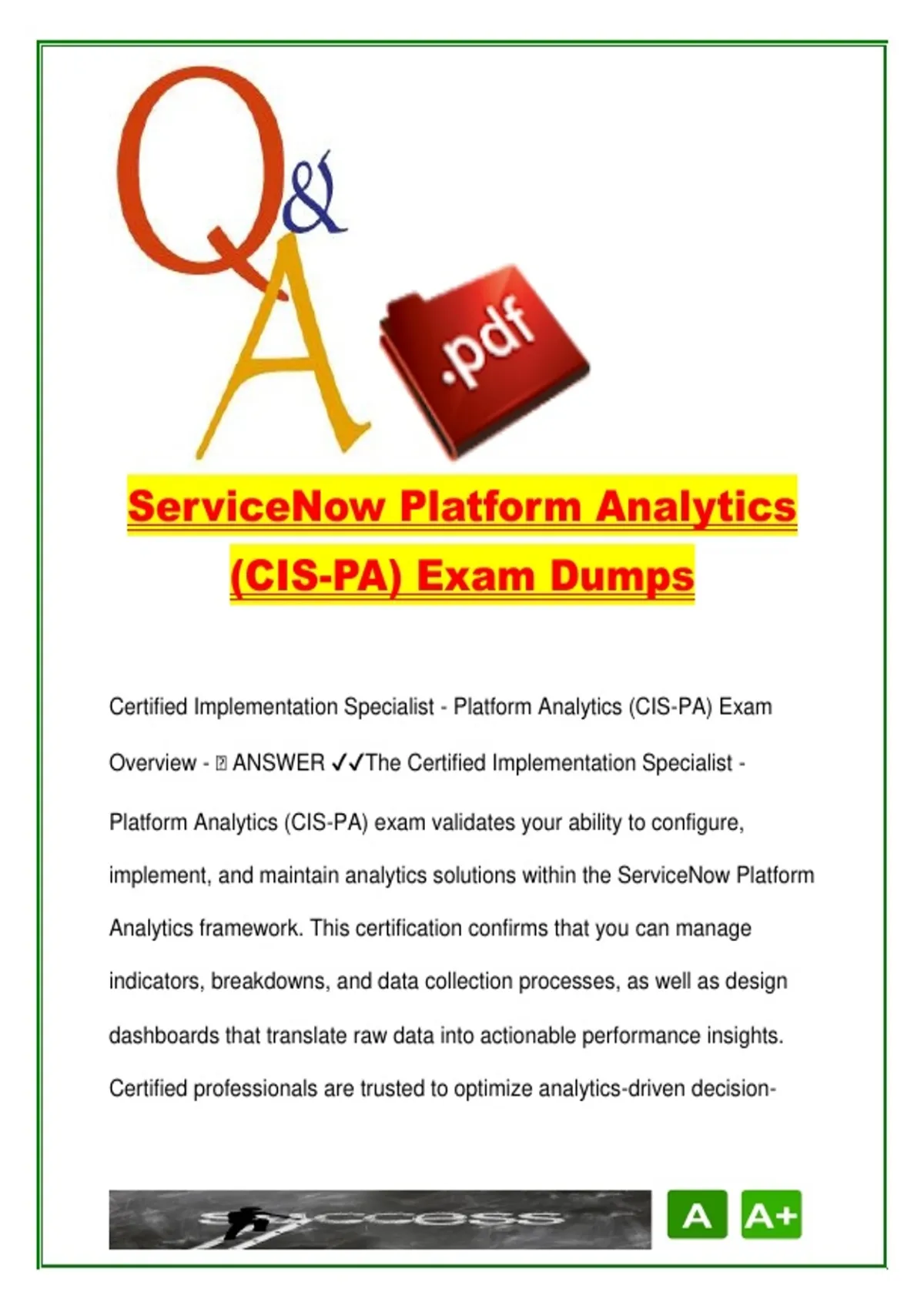 Platform Analytics (CIS-PA) exam validates your ability to configure,