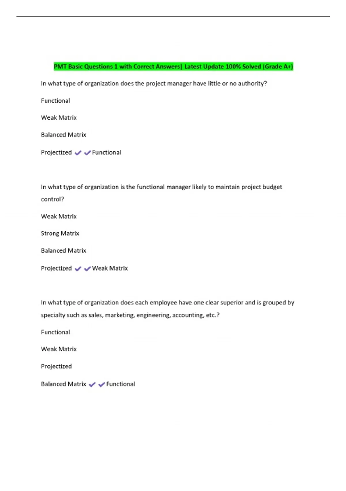 pmt basic questions 1 with correct answers latest