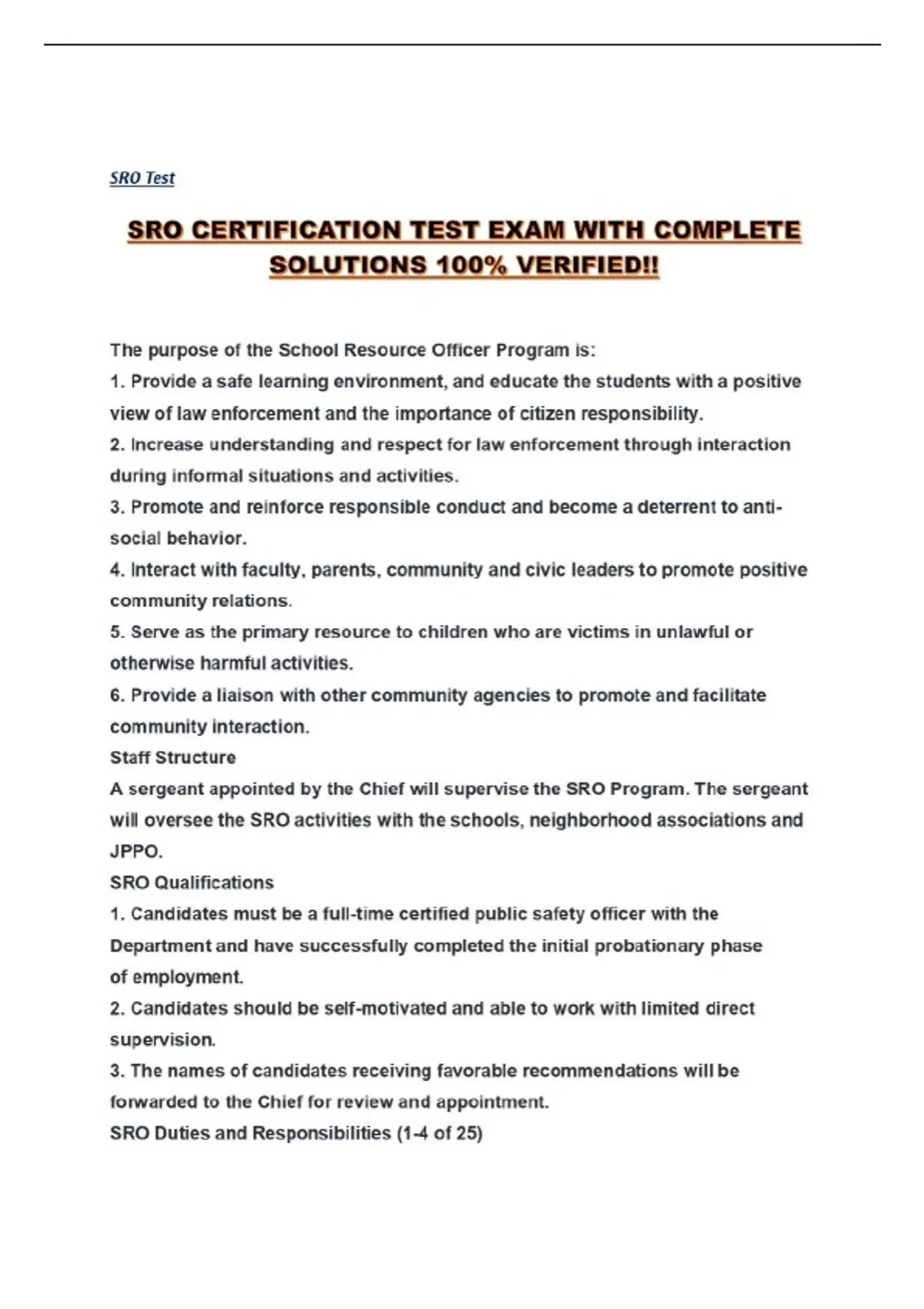 SRO CERTIFICATION TEST EXAM WITH COMPLETE SOLUTIONS 100% VERIFIED!!...
