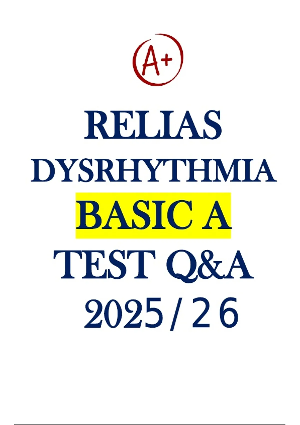 Relias Dysrhythmia Basic A Test Q&A provides comprehensive practice questions covering cardiac rhythm interpretation, ECG fundamentals, identification of common dysrhythmias, and basic cardiac monitoring concepts. Structured to support focused review and assessment readiness, it aligns with core dysrhythmia training topics used in clinical and healthcare education.