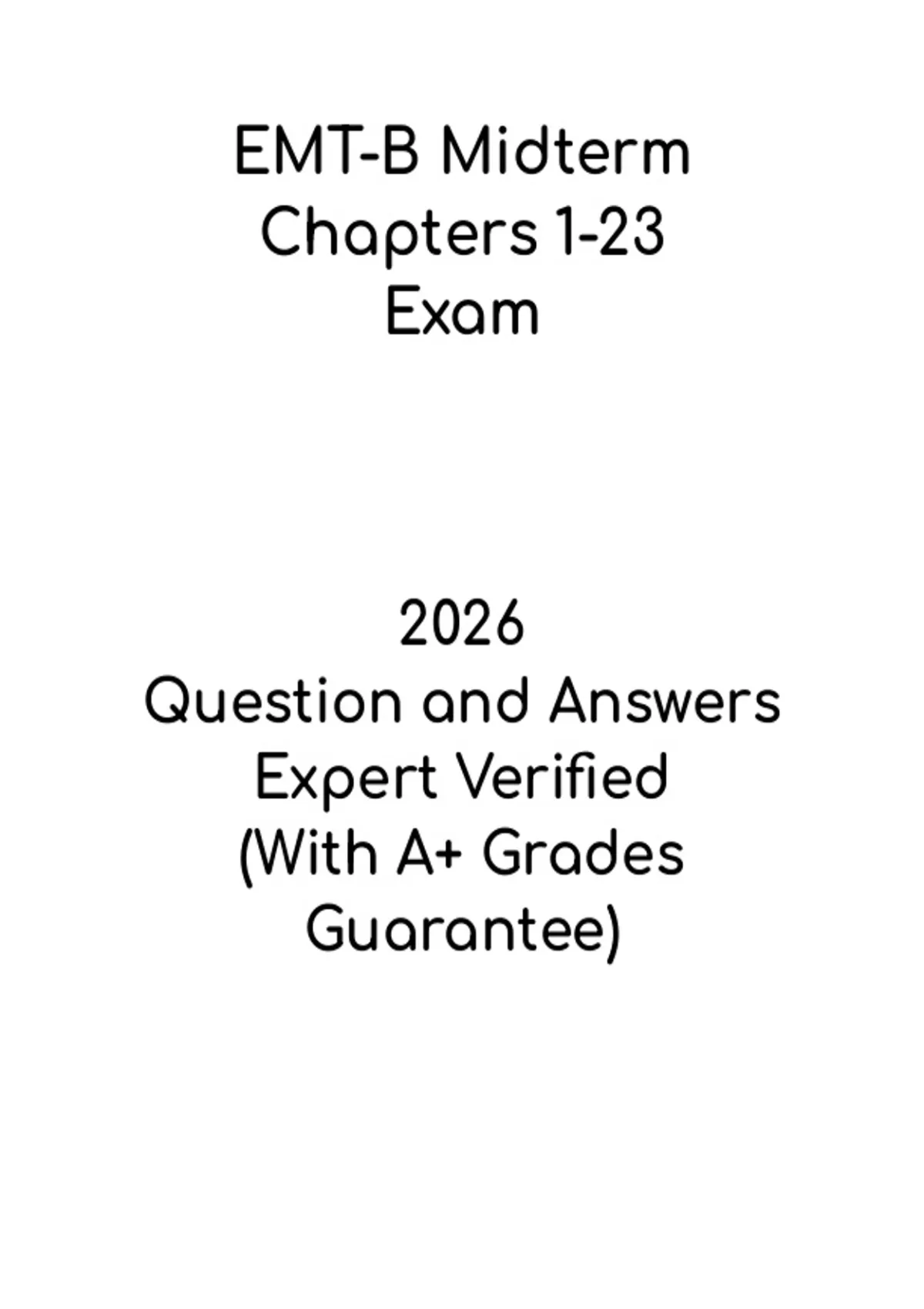 This EMT-B Midterm Chapters 1-23 study guide provides a comprehensive review of all core concepts covered in the first 23 chapters of EMT-Basic training. Topics include patient assessment, airway management, trauma care, medical emergencies, and essential EMS protocols. With structured notes, key concepts, and practice questions, this guide is ideal for students preparing for their EMT-B midterm exam. It reinforces understanding, improves retention, and builds confidence, ensuring readiness for both the midterm assessment and future EMT-B certification.