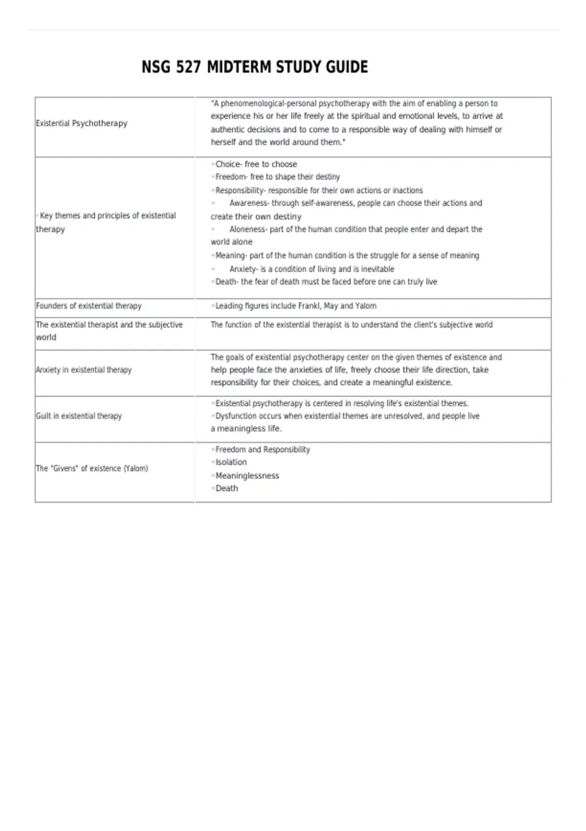 Guilt in existential therapy ◦Dysfunction occurs when existential themes are unresolved, and people live