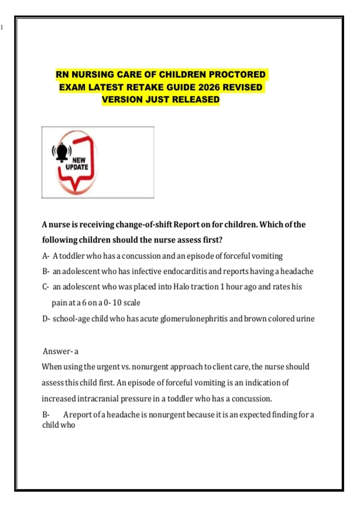 RN NURSING CARE OF CHILDREN PROCTORED