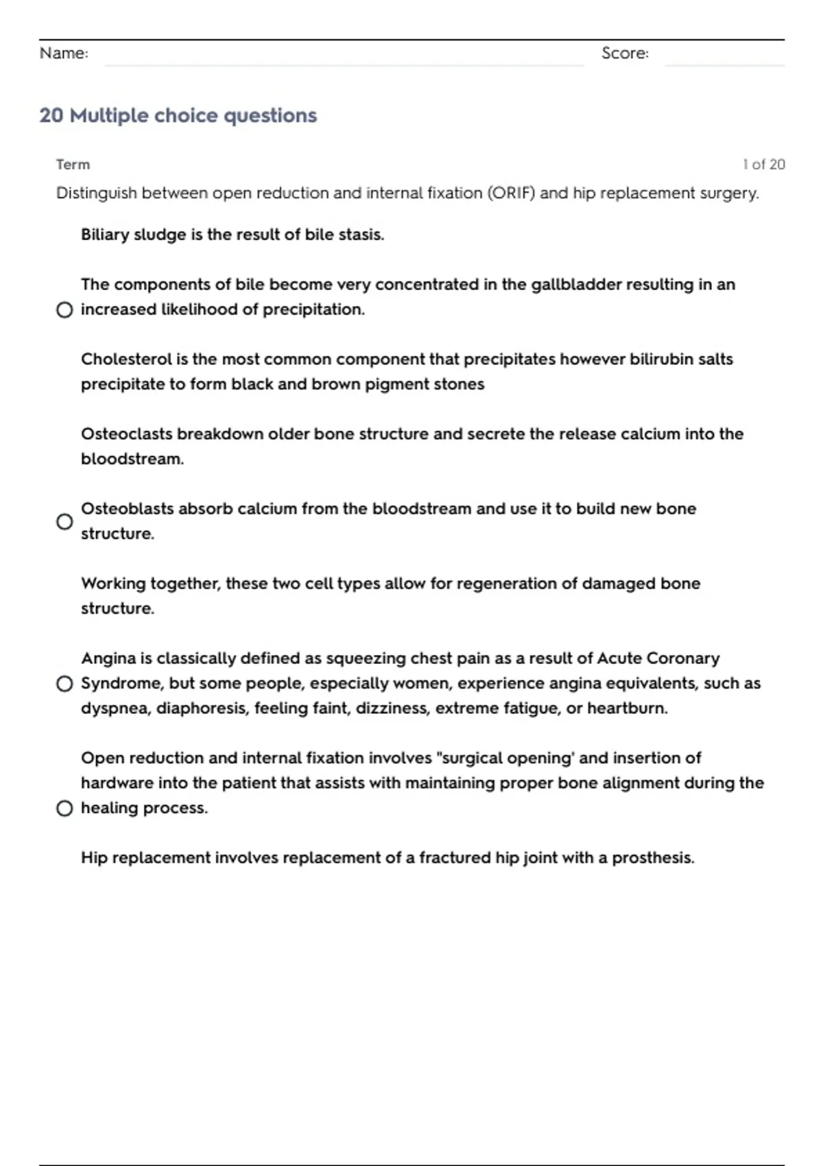 20 Multiple choice questions