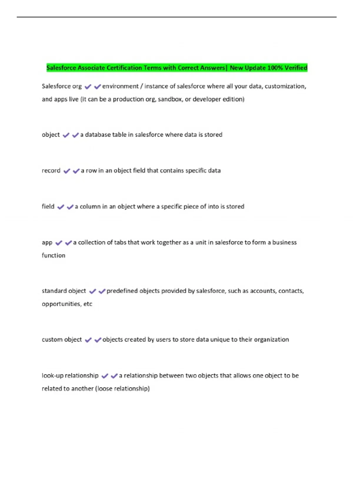 Salesforce Associate Certification Terms with Correct Answers| New Update