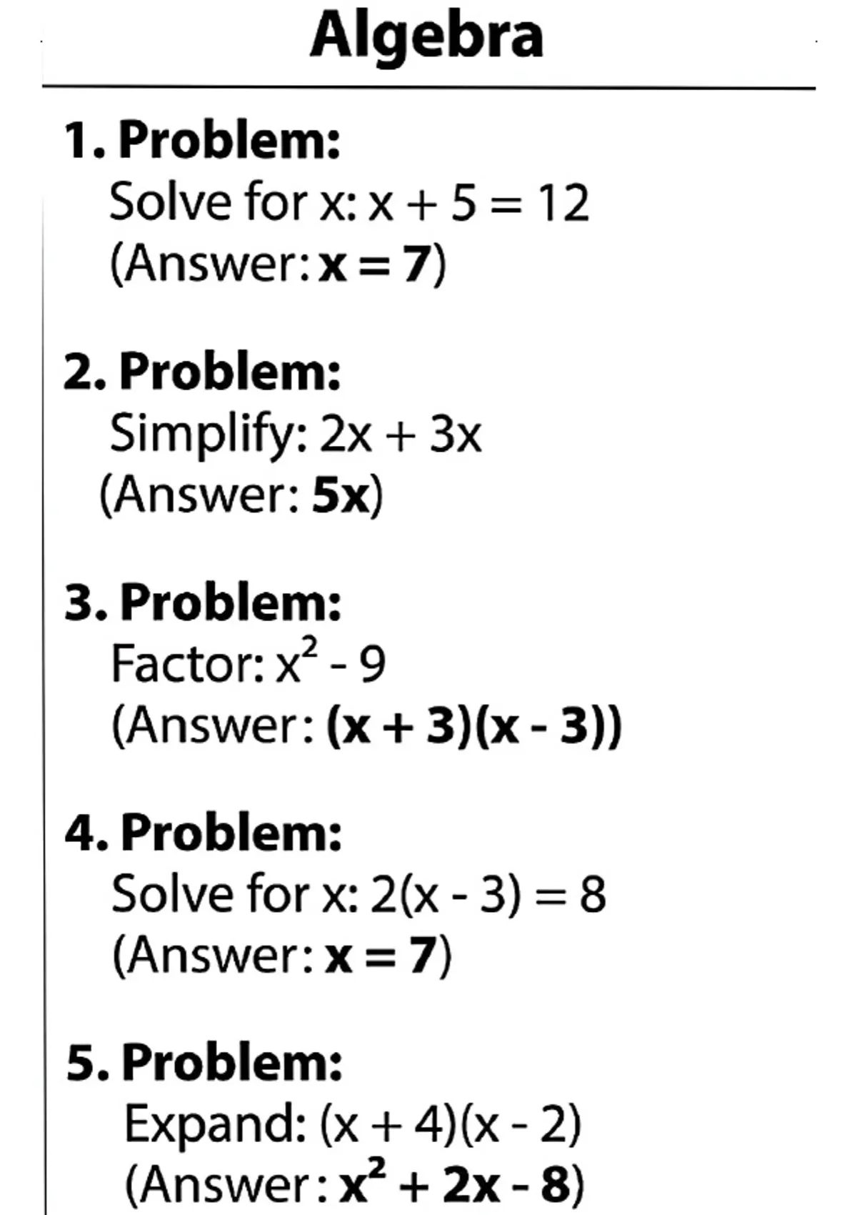 Easy to follow algebra practice problems with step-by-step solutions for students.