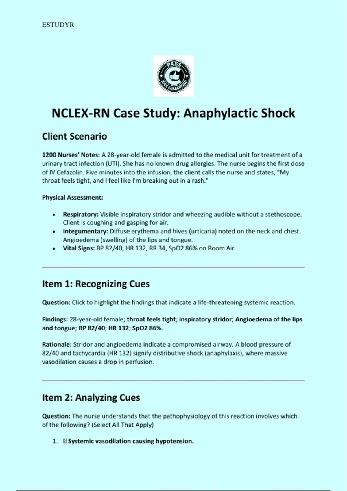 Question: Click to highlight the findings that indicate a life-threatening systemic reaction.