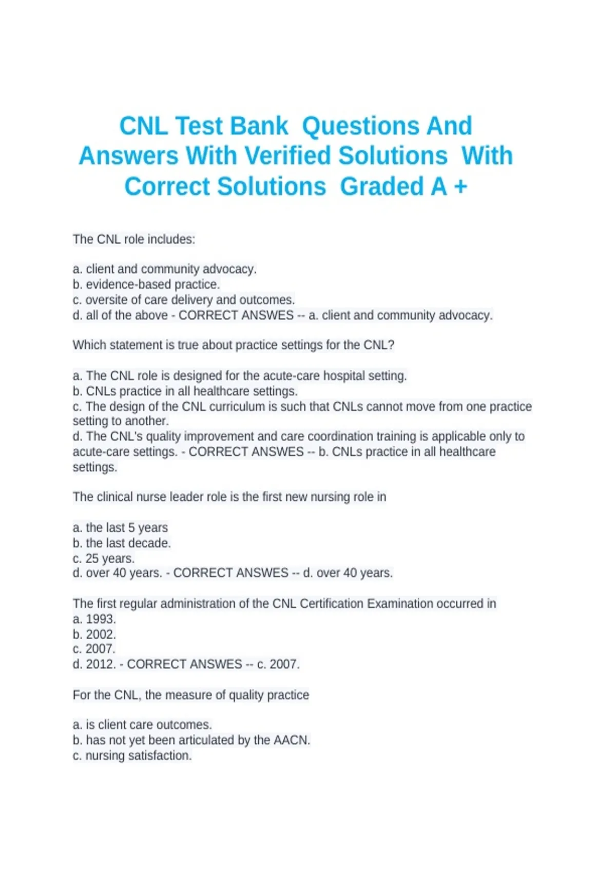 d. was written by CNLs. - CORRECT ANSWES -- b. is compatible with the CNL role.