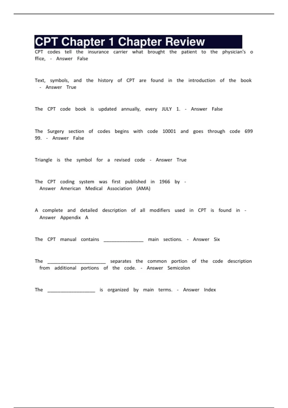 CPT Chapter 1 Chapter Review