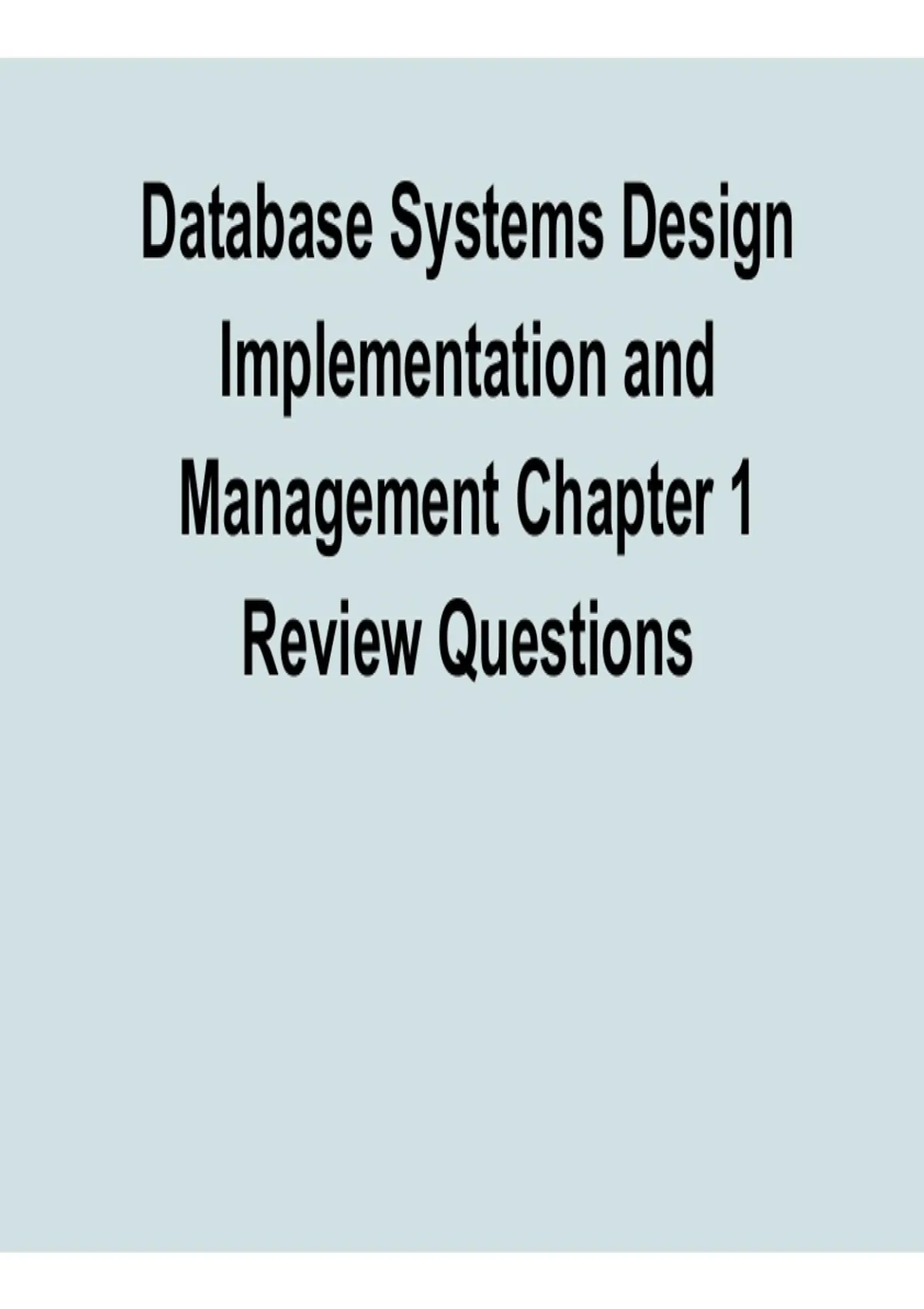 Reinforce your understanding of foundational database concepts with this Chapter 1 review questions resource with solution. Covering essential topics such as database design principles, data models, DBMS functions, and system architecture, this study guide provides clear explanations and structured practice to support learning. Updated 2025/ 2026, it helps students build a strong conceptual base, improve problem-solving skills, and confidently prepare for exams in database systems design, implementation, and management.